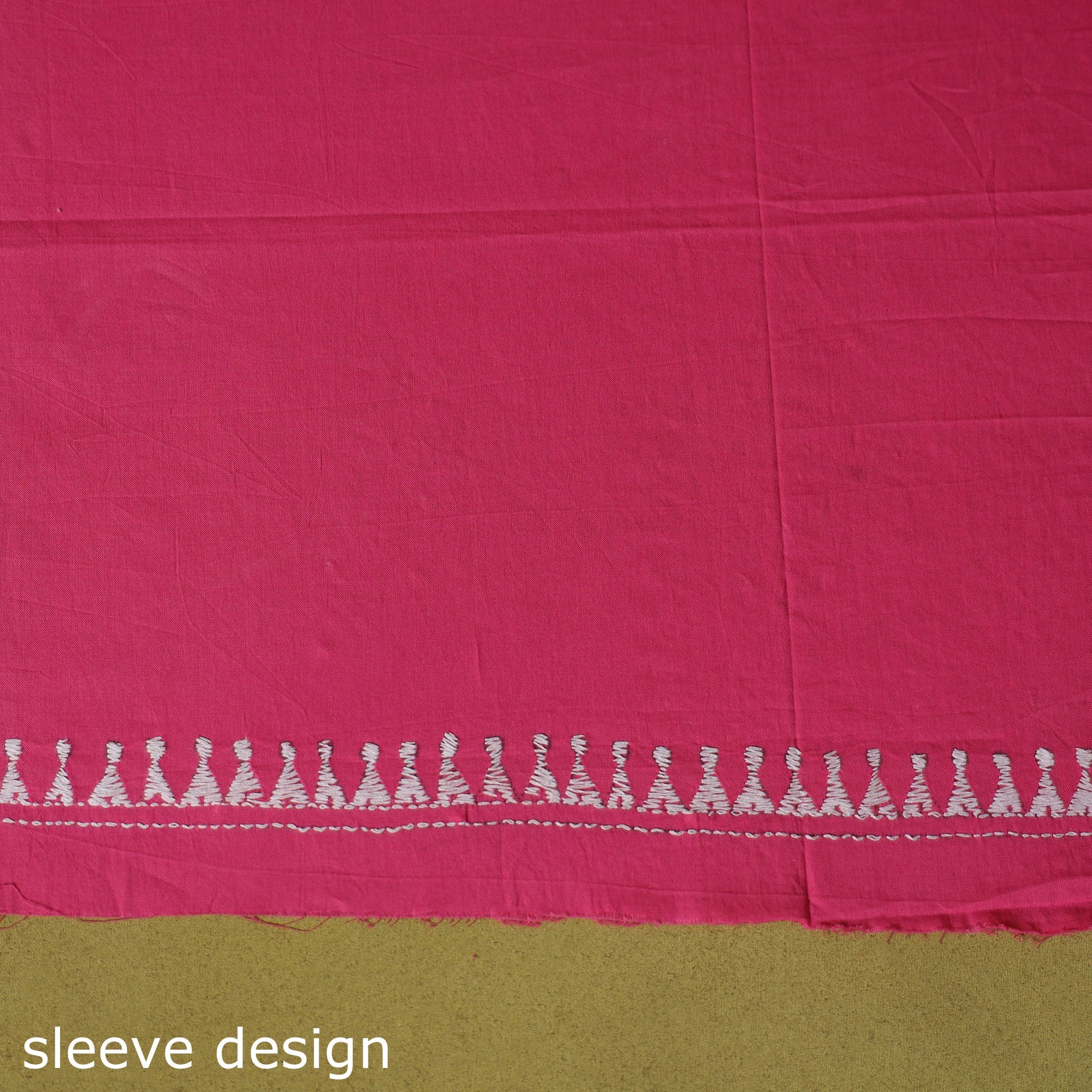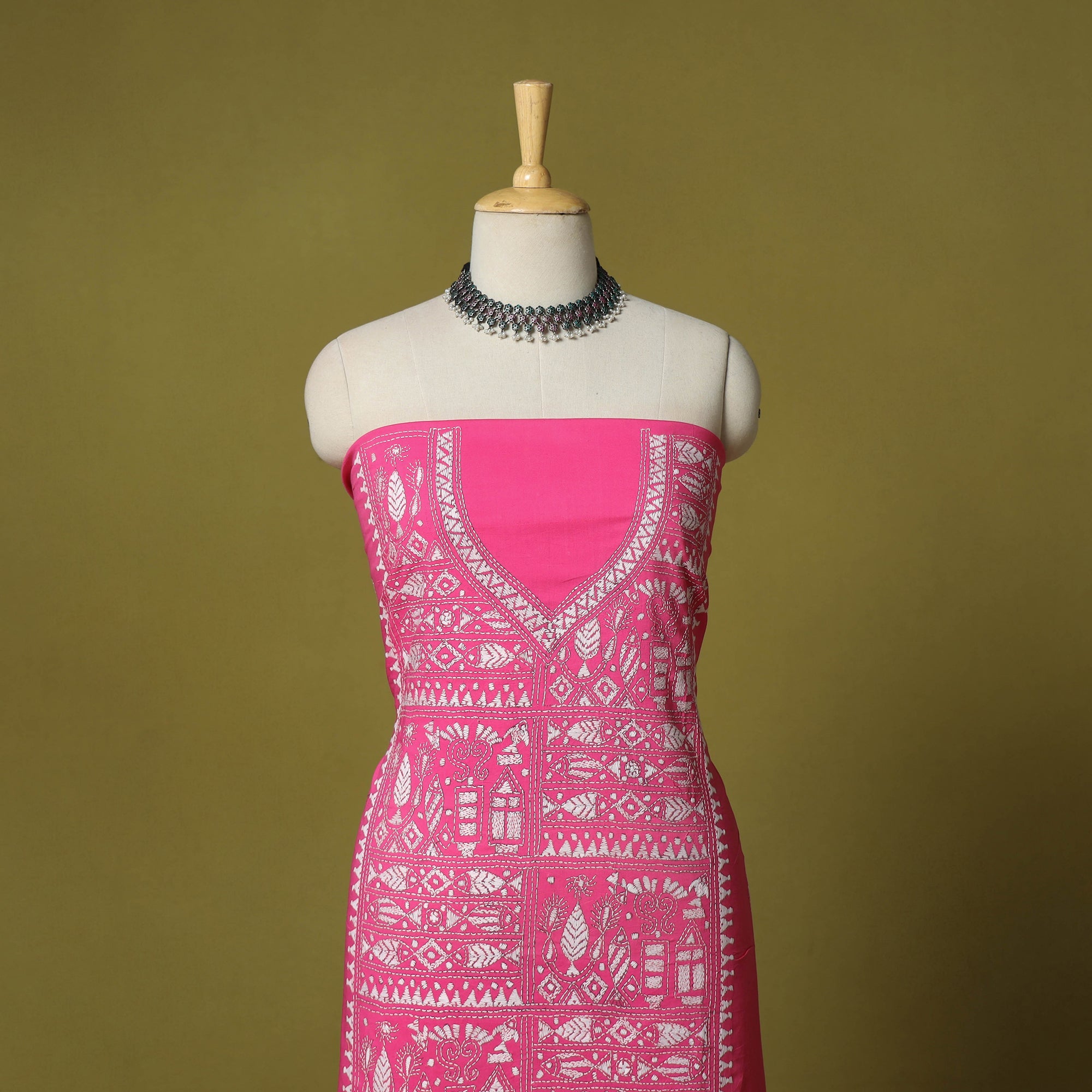 This pink unstitched cotton kurta material brings together Bengal’s traditional kantha hand embroidery with a fresh, contemporary touch. Each hand embroidery reflects the rich heritage of West Bengal while adding a unique charm to your wardrobe. Designed with detailed hand embroidery, it offers comfort, elegance, and versatility. Perfect for creating a kurta that’s stylish yet rooted in tradition, this fabric lets you craft an outfit that truly stands out.