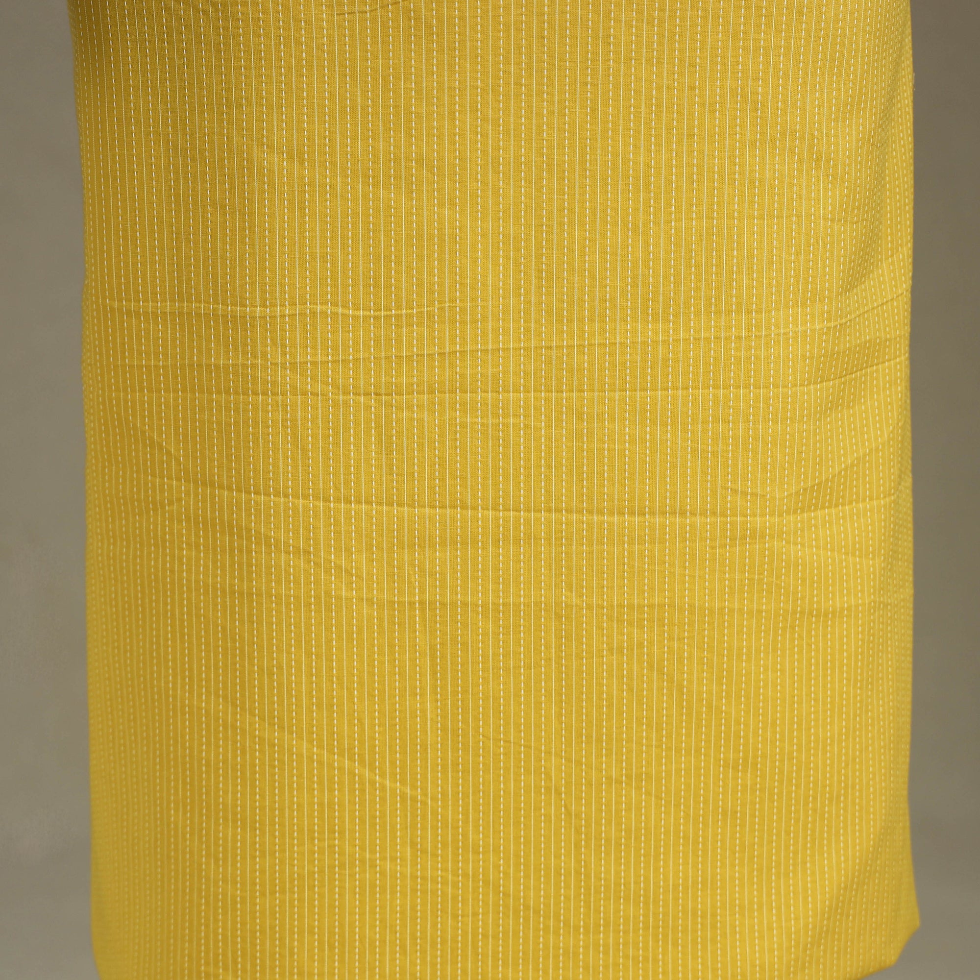 This yellow plain cotton kurta material is crafted for everyday ease with a subtle artisanal flair. It features delicate running-stitch work and a patchwork detail at the neckline, adding a hint of handcrafted elegance. Ideal for making daily-wear kurtas, office attire, or laid-back casual looks.