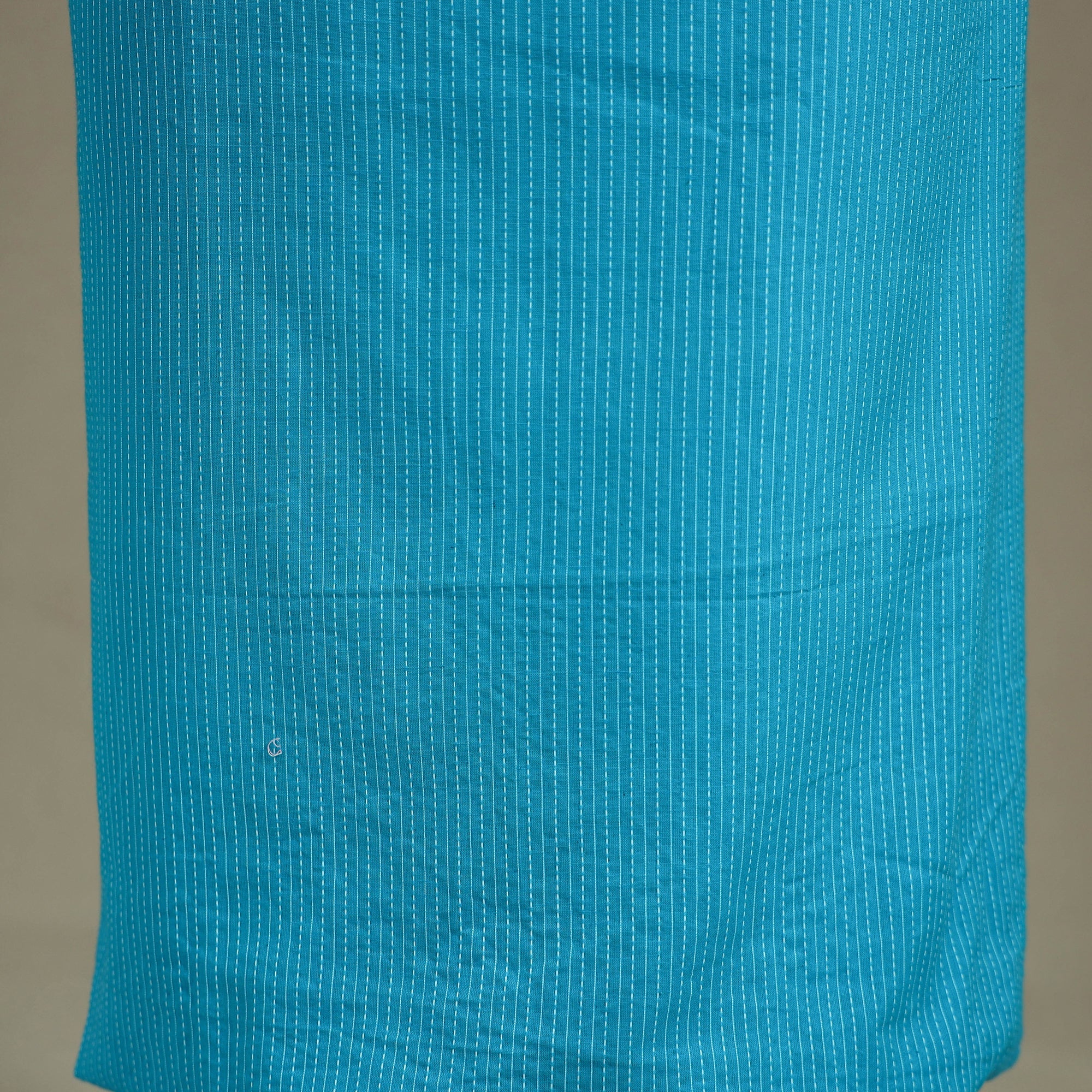 This blue plain cotton kurta material is crafted for everyday ease with a subtle artisanal flair. It features delicate running-stitch work and a patchwork detail at the neckline, adding a hint of handcrafted elegance. Ideal for making daily-wear kurtas, office attire, or laid-back casual looks.