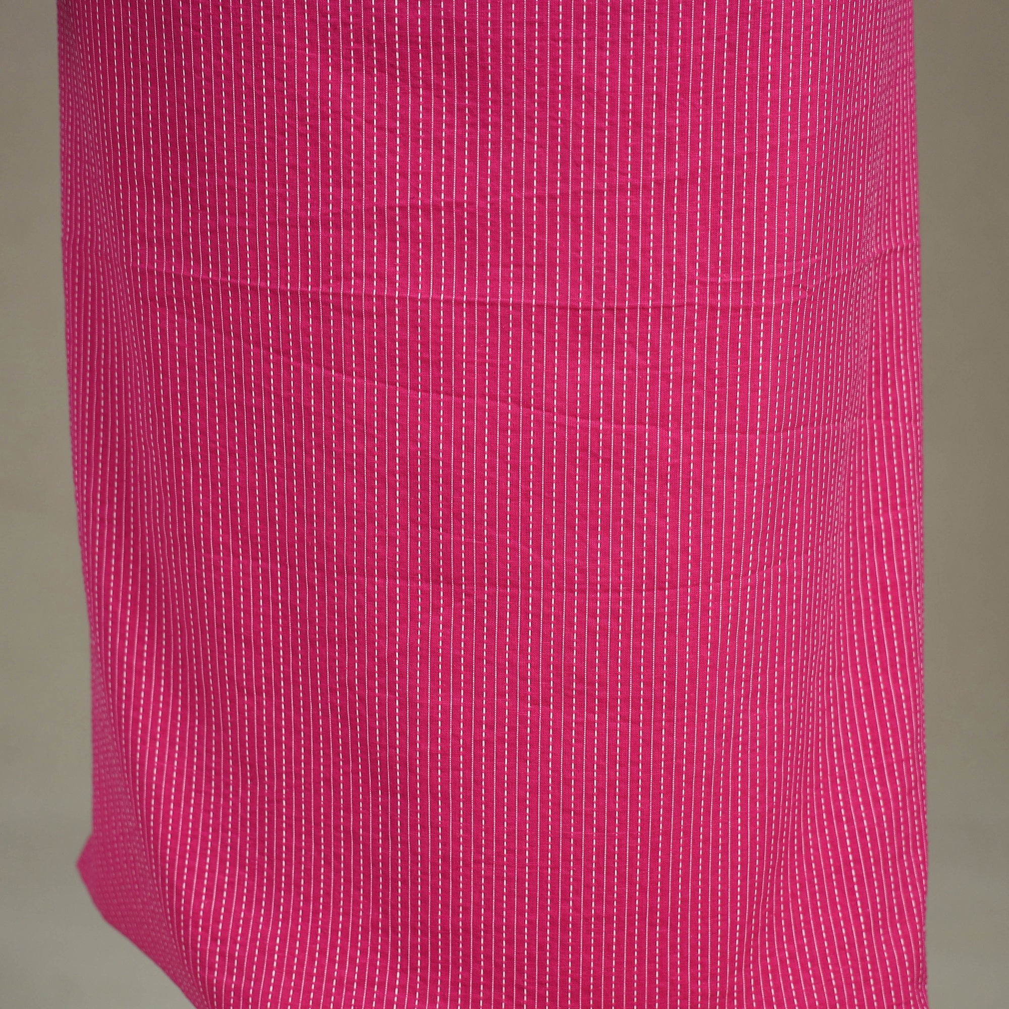 This pink plain cotton kurta material is crafted for everyday ease with a subtle artisanal flair. It features delicate running-stitch work and a patchwork detail at the neckline, adding a hint of handcrafted elegance. Ideal for making daily-wear kurtas, office attire, or laid-back casual looks.