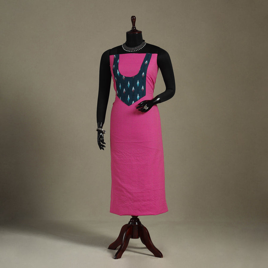 This pink plain cotton kurta material is crafted for everyday ease with a subtle artisanal flair. It features delicate running-stitch work and a patchwork detail at the neckline, adding a hint of handcrafted elegance. Ideal for making daily-wear kurtas, office attire, or laid-back casual looks.