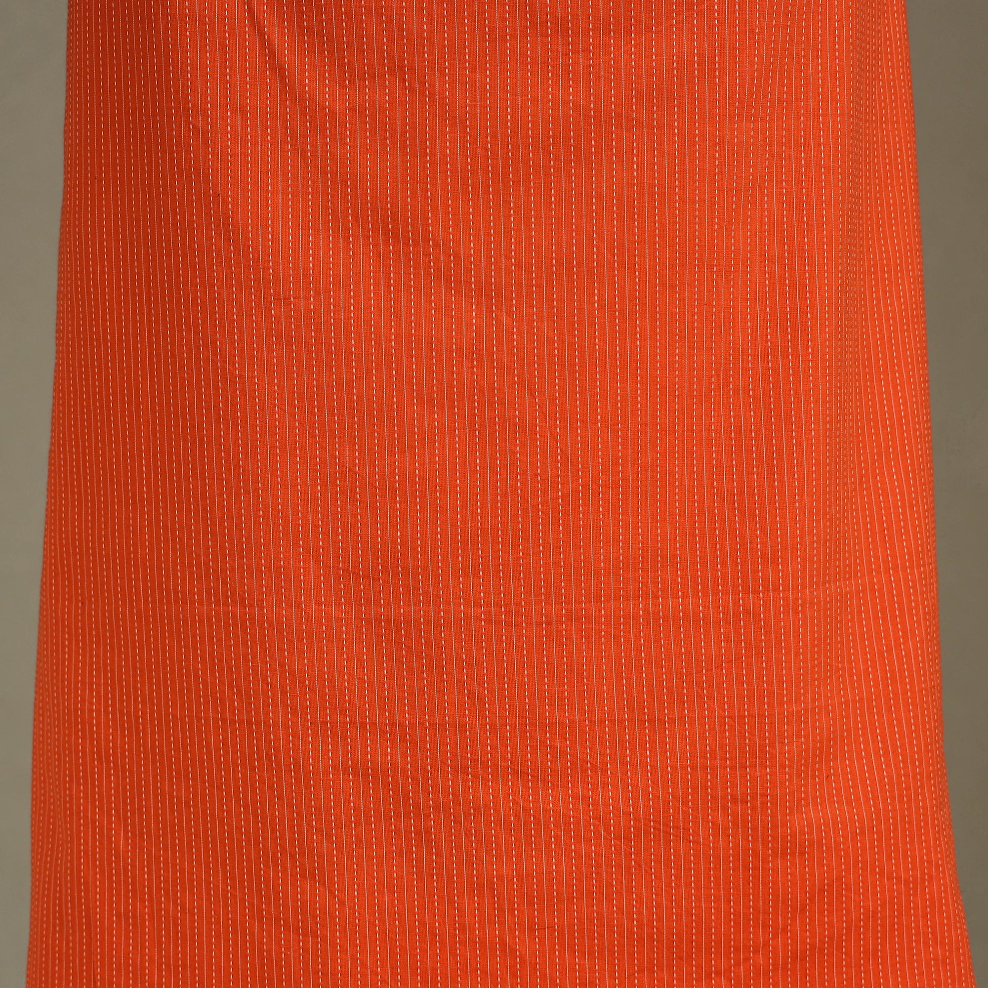 This orange plain cotton kurta material is crafted for everyday ease with a subtle artisanal flair. It features delicate running-stitch work and a patchwork detail at the neckline, adding a hint of handcrafted elegance. Ideal for making daily-wear kurtas, office attire, or laid-back casual looks.