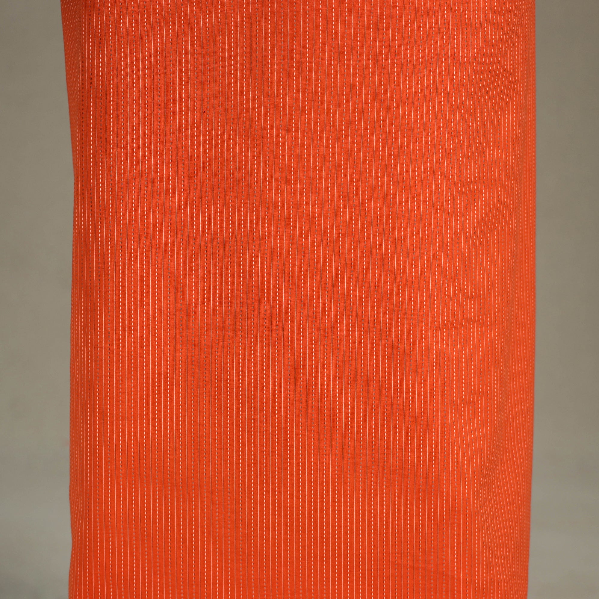 This orange plain cotton kurta material is crafted for everyday ease with a subtle artisanal flair. It features delicate running-stitch work and a patchwork detail at the neckline, adding a hint of handcrafted elegance. Ideal for making daily-wear kurtas, office attire, or laid-back casual looks.