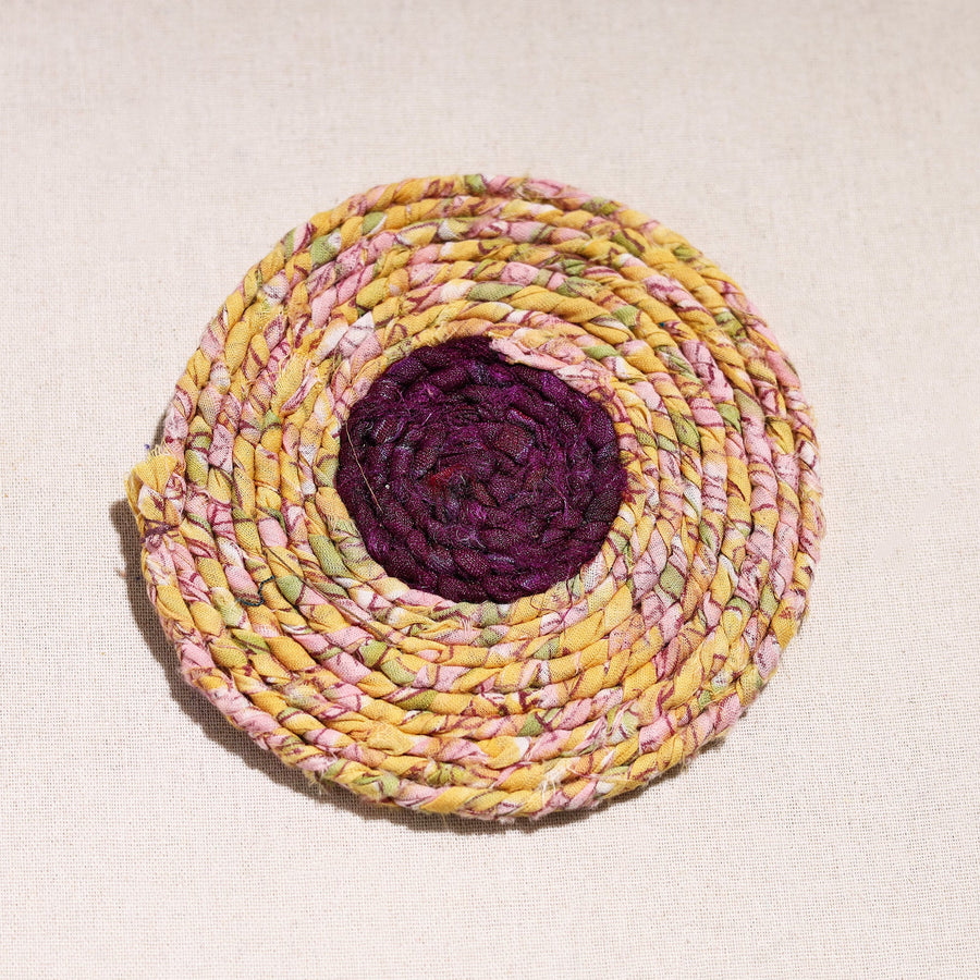 Made with love and care, this upcycled fabric hand-braided coaster. These eco-friendly coasters are handcrafted by artisans using upcycled cotton fabric, giving a new life to textile waste. These coasters protect surfaces from stains and also bring sustainable elegance to your home.