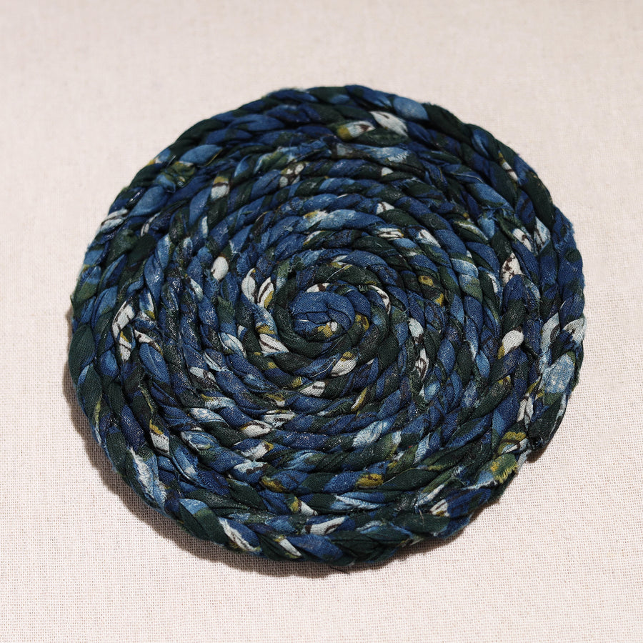 Made with love and care, this upcycled fabric hand-braided coaster. These eco-friendly coasters are handcrafted by artisans using upcycled cotton fabric, giving a new life to textile waste. These coasters protect surfaces from stains and also bring sustainable elegance to your home.