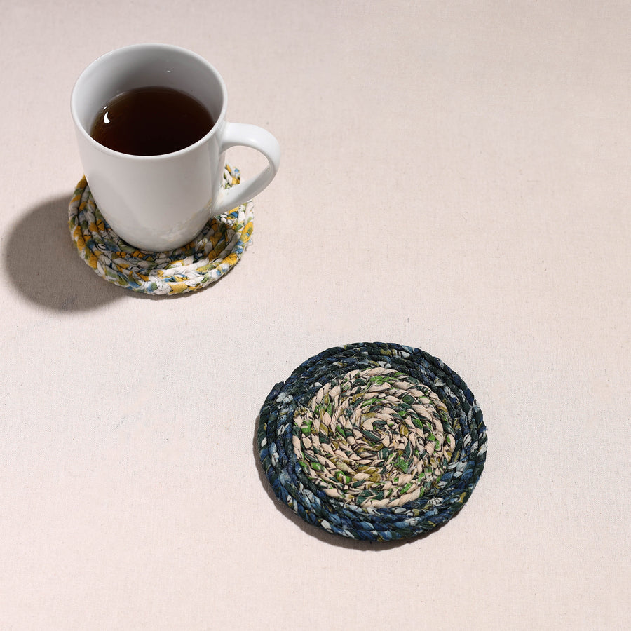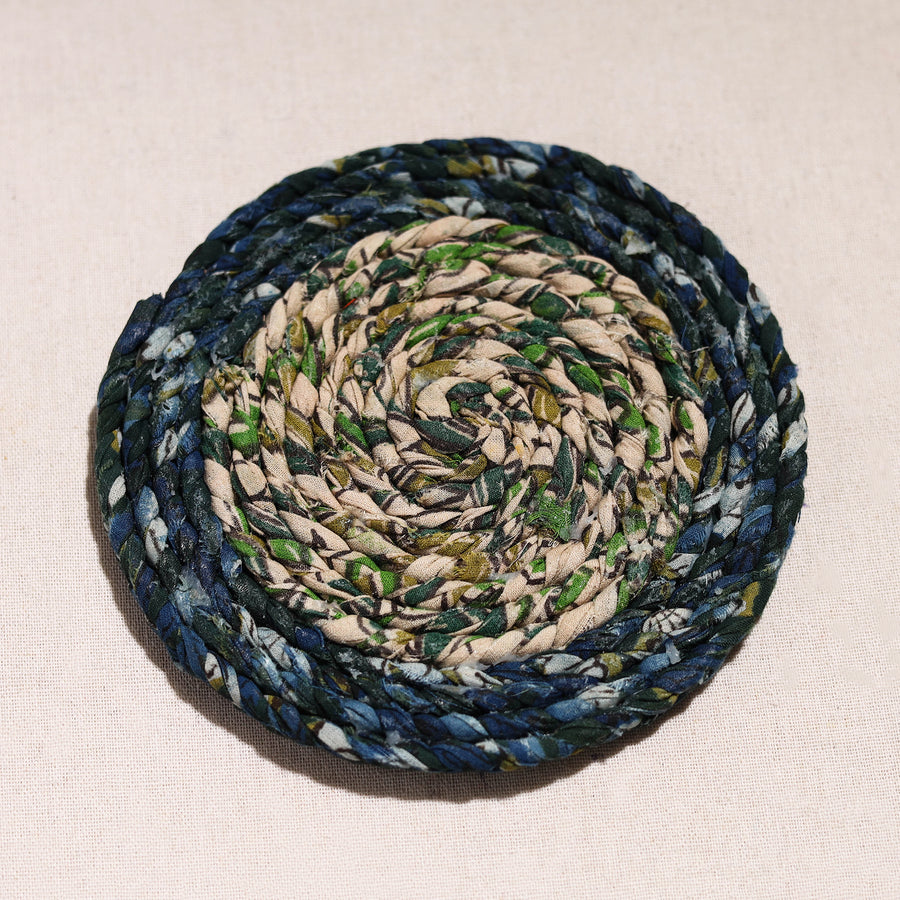 Made with love and care, this upcycled fabric hand-braided coaster. These eco-friendly coasters are handcrafted by artisans using upcycled cotton fabric, giving a new life to textile waste. These coasters protect surfaces from stains and also bring sustainable elegance to your home.