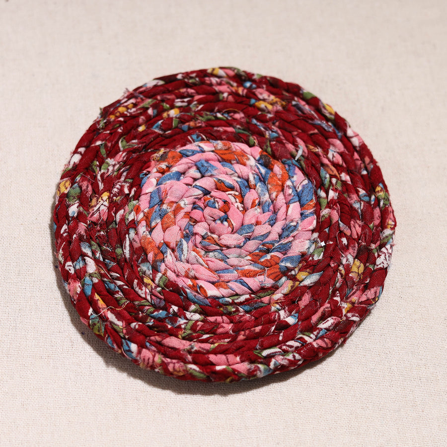 Made with love and care, this upcycled fabric hand-braided coaster. These eco-friendly coasters are handcrafted by artisans using upcycled cotton fabric, giving a new life to textile waste. These coasters protect surfaces from stains and also bring sustainable elegance to your home.