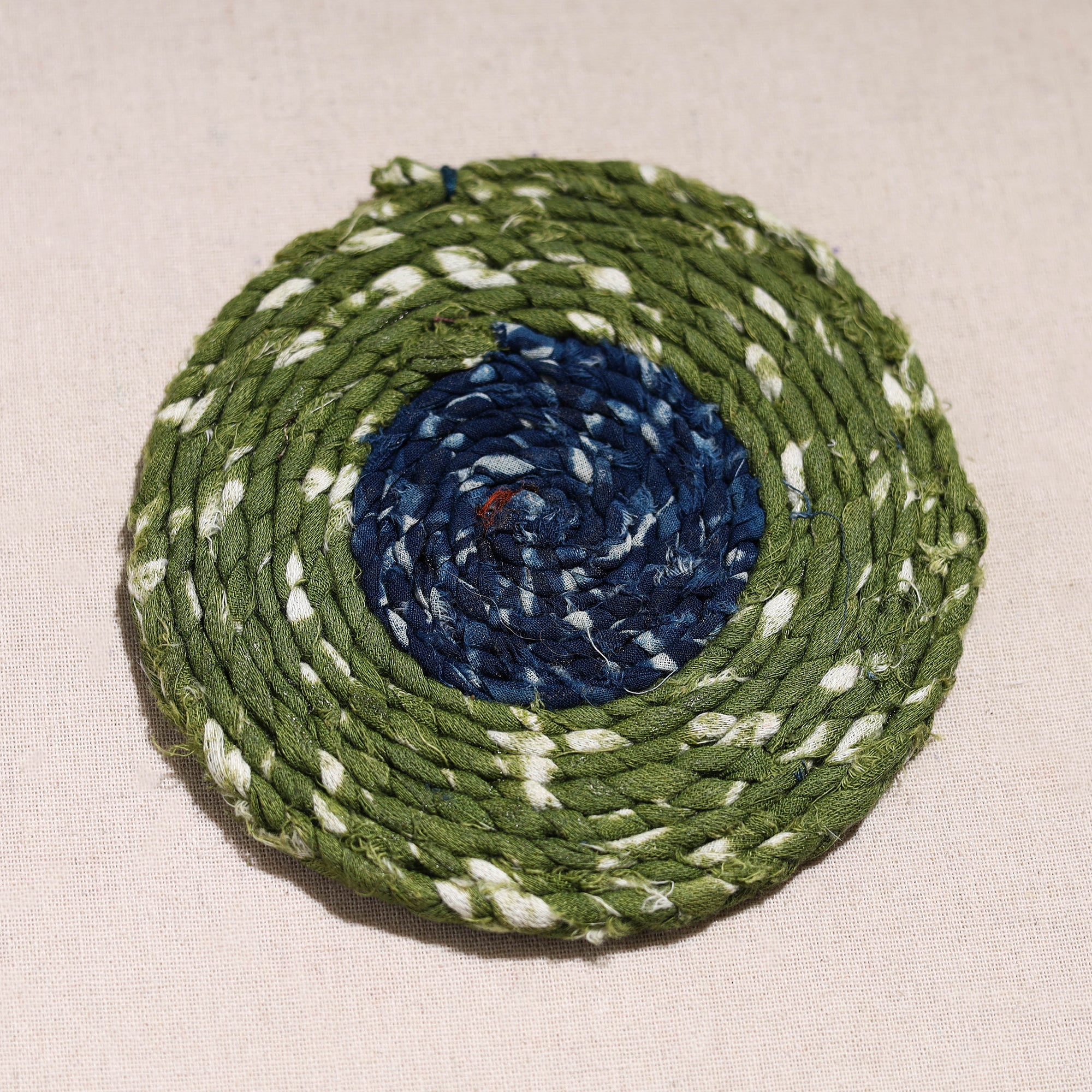 Made with love and care, this upcycled fabric hand-braided coaster. These eco-friendly coasters are handcrafted by artisans using upcycled cotton fabric, giving a new life to textile waste. These coasters protect surfaces from stains and also bring sustainable elegance to your home.