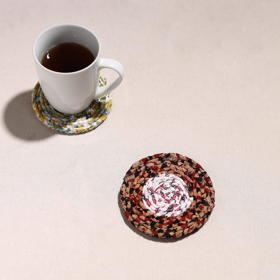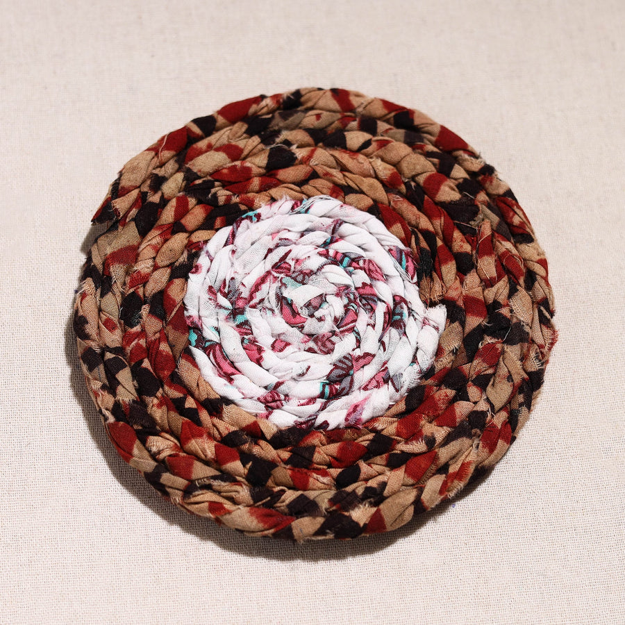 Made with love and care, this upcycled fabric hand-braided coaster. These eco-friendly coasters are handcrafted by artisans using upcycled cotton fabric, giving a new life to textile waste. These coasters protect surfaces from stains and also bring sustainable elegance to your home.