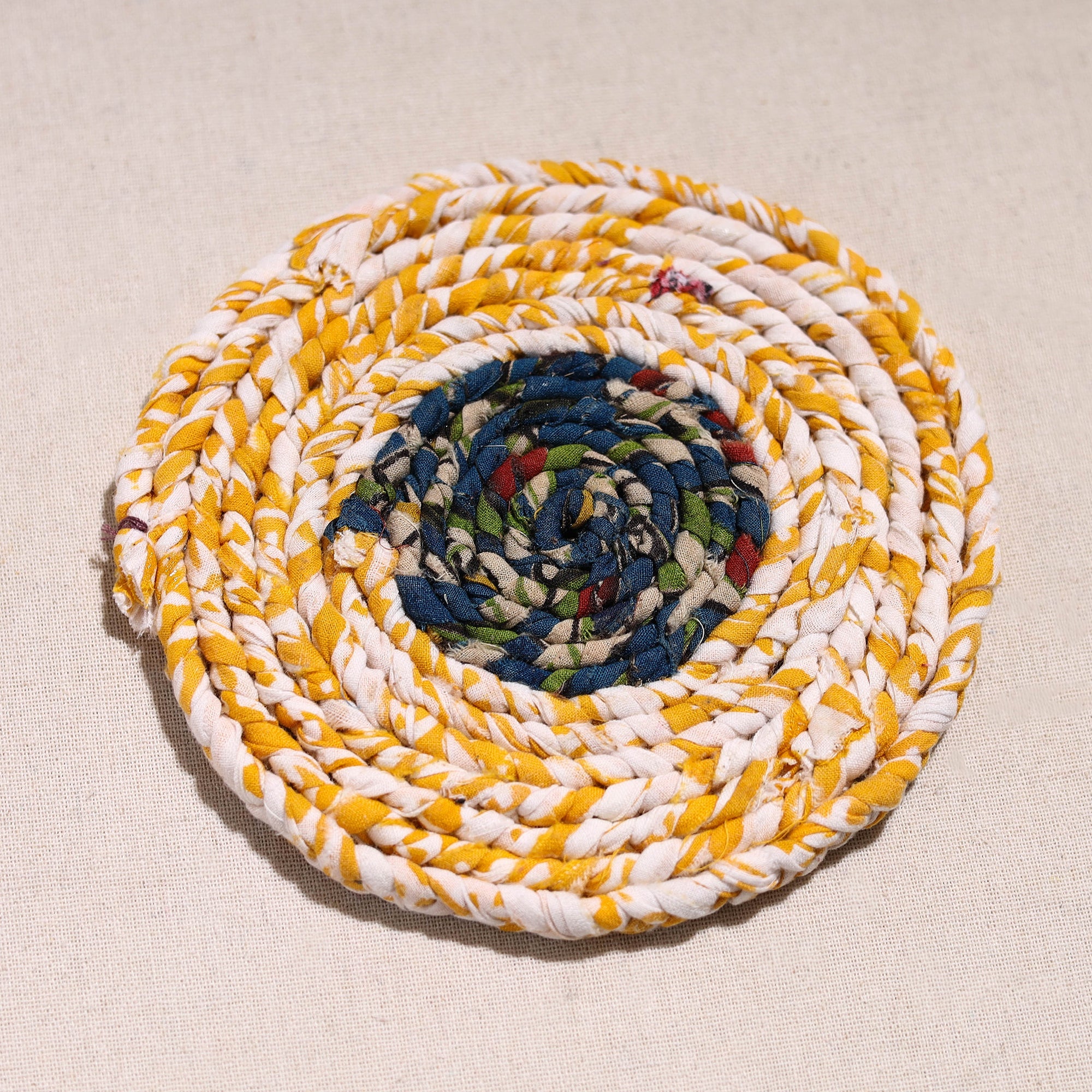 Made with love and care, this upcycled fabric hand-braided coaster. These eco-friendly coasters are handcrafted by artisans using upcycled cotton fabric, giving a new life to textile waste. These coasters protect surfaces from stains and also bring sustainable elegance to your home.