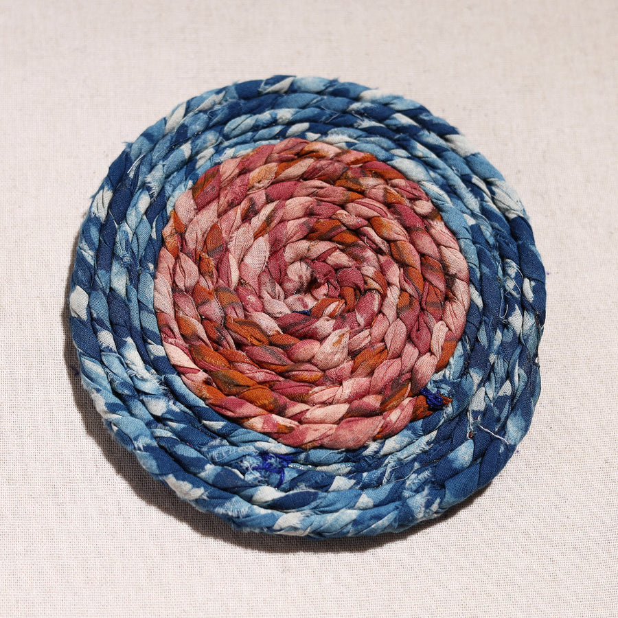 Made with love and care, this upcycled fabric hand-braided coaster. These eco-friendly coasters are handcrafted by artisans using upcycled cotton fabric, giving a new life to textile waste. These coasters protect surfaces from stains and also bring sustainable elegance to your home.