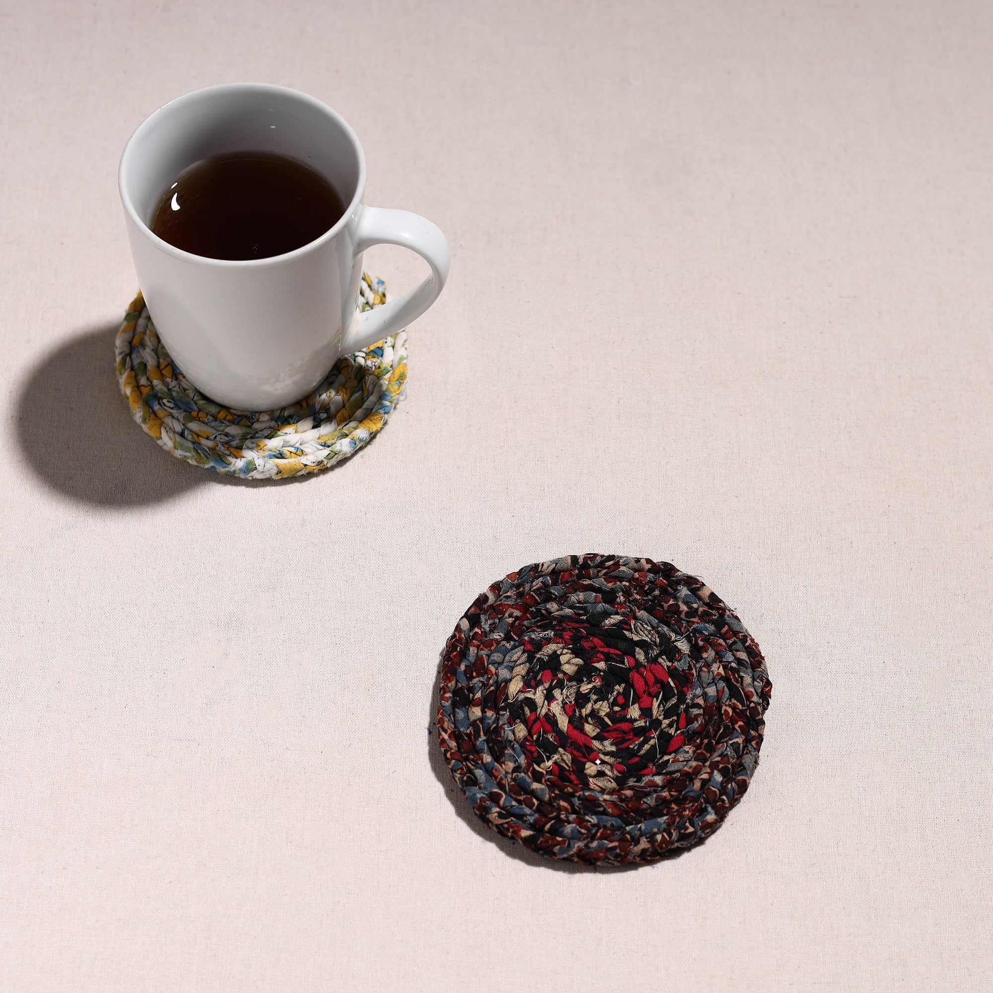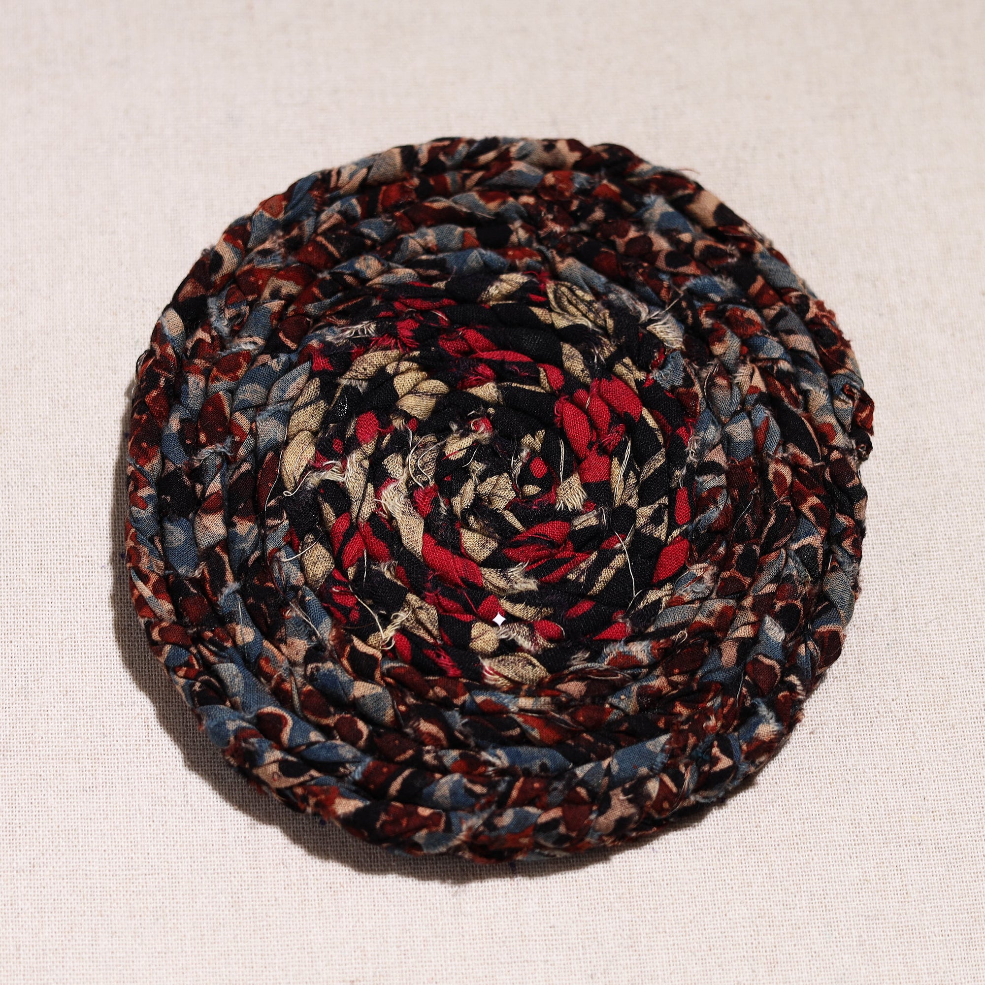 Made with love and care, this upcycled fabric hand-braided coaster. These eco-friendly coasters are handcrafted by artisans using upcycled cotton fabric, giving a new life to textile waste. These coasters protect surfaces from stains and also bring sustainable elegance to your home.