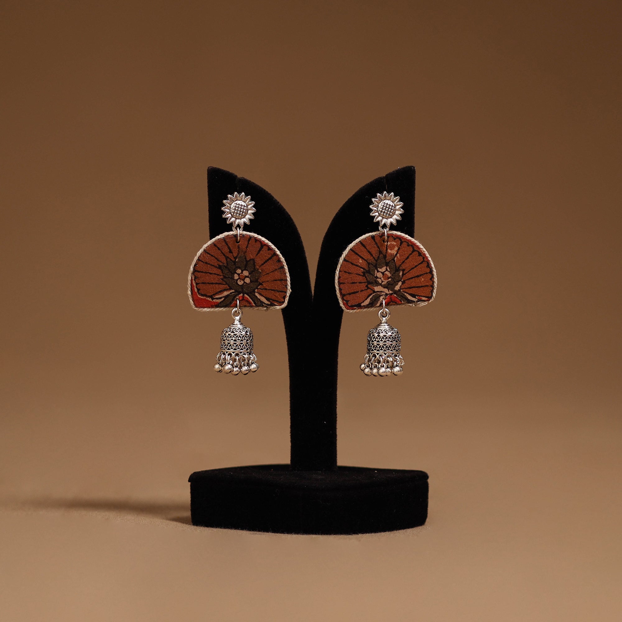 Handmade fabric earrings with german silver jhumki is attached at the end, that enhances its charm. Perfect for everyday wear or special occasions, these earrings blend traditional style with a graceful touch.