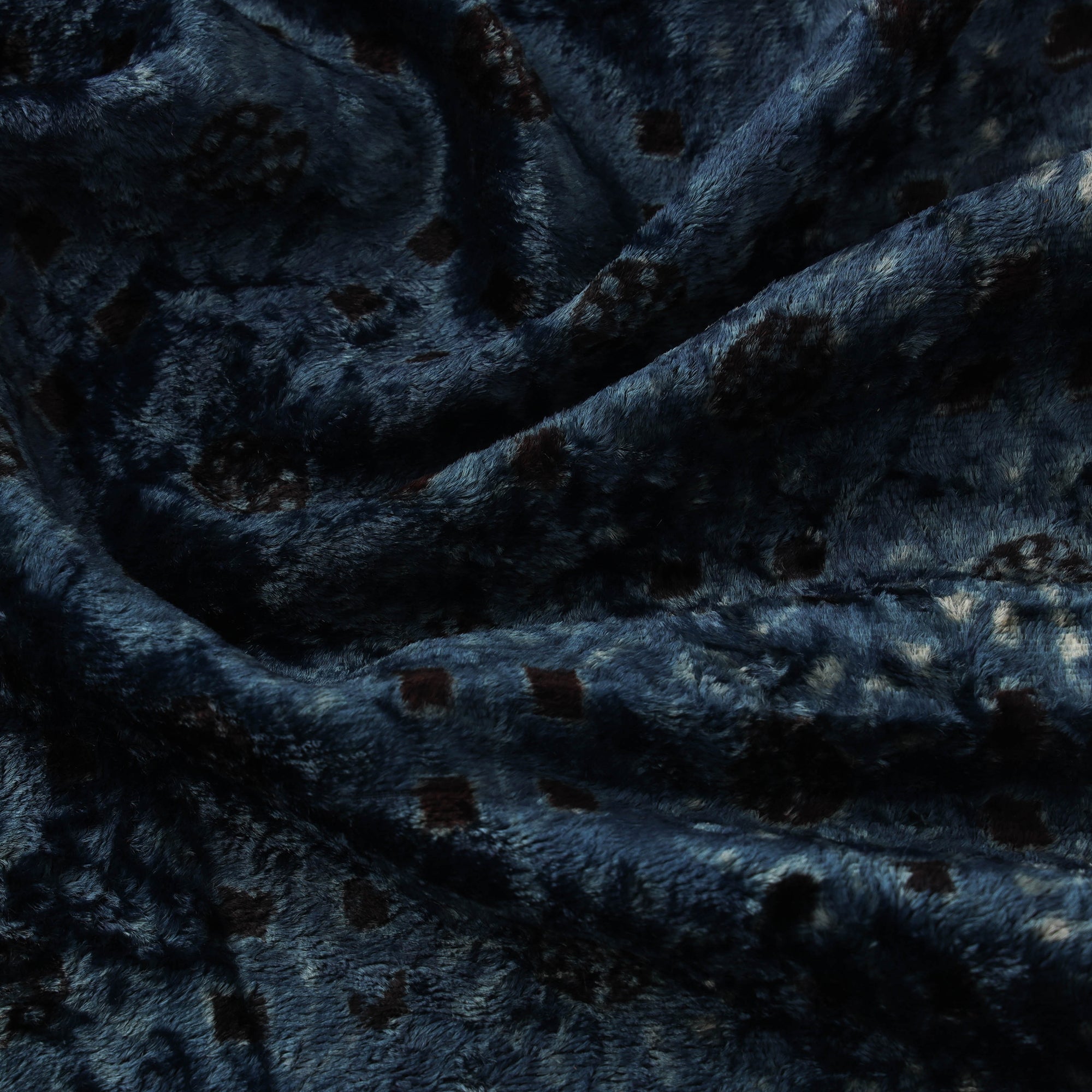 Ajrakh hand block print velvet fabric is crafted using natural-dyeing and resist block-printing techniques. This ancient craft is estimated to be around 4,500 years old. The Ajrakh artisans in India originally migrated from Sindh to the Kutch region of Gujarat and to Barmer in Rajasthan. Ajrakh is also the traditional attire of the Maldhari pastoral community of Bhuj. The process is long and detailed, involving multiple stages where each layer of colour is printed only after a resting period, allowing the cloth to absorb the dye fully. Made from velvet and viscose blend, it is ideal for creating kurtas, shirts, dresses or even home decor items.