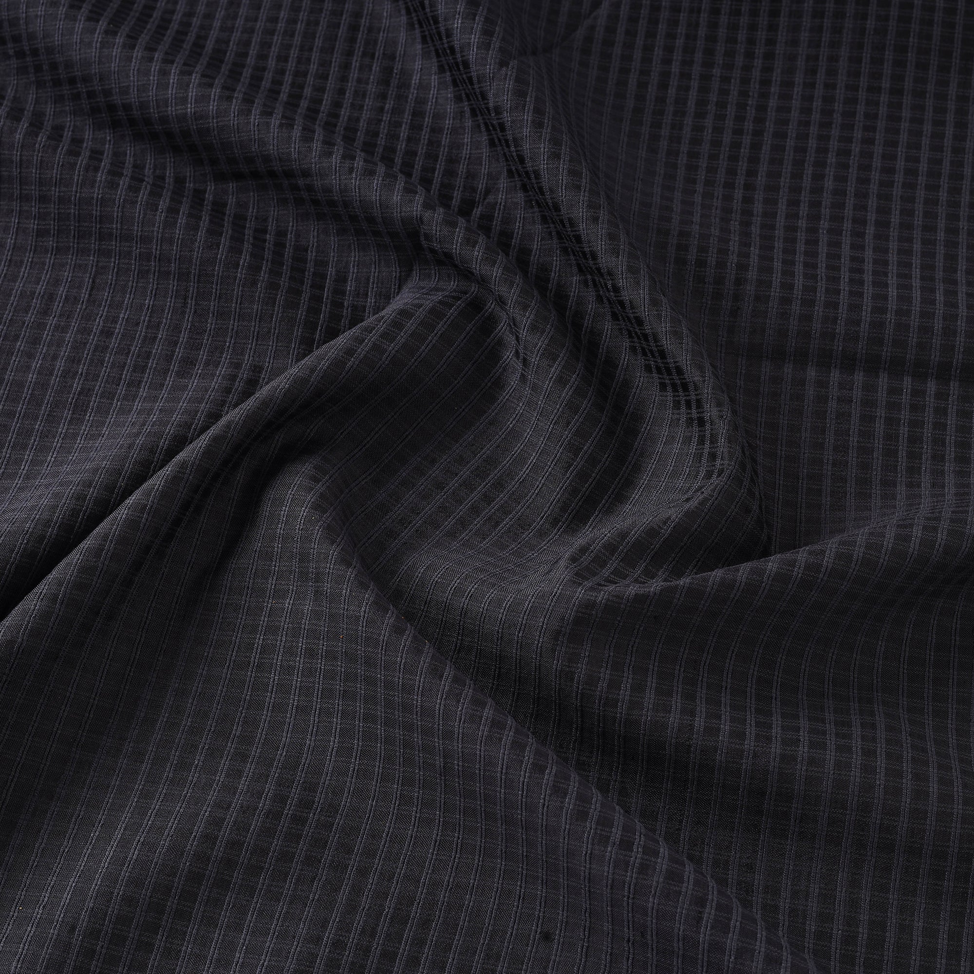 This tussar cotton blend combines the natural sheen of silk with the light, breathable texture of cotton, ideal for all seasons. Handwoven in Vidarbha, these black checked fabrics exhibit fine textures that reflect regional weaving traditions