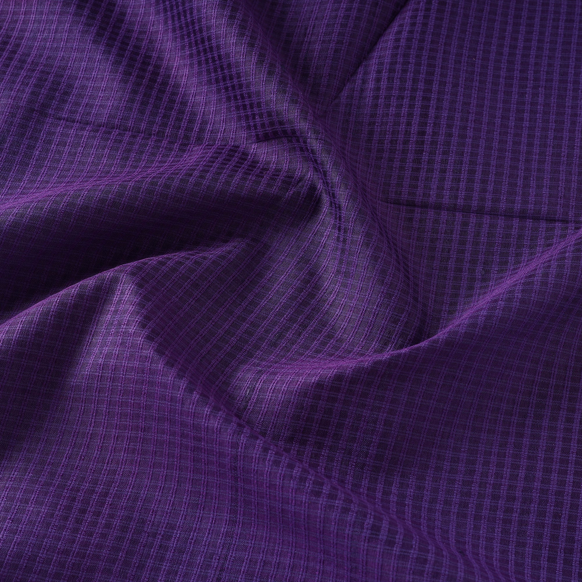 This tussar cotton blend combines the natural sheen of silk with the light, breathable texture of cotton, ideal for all seasons. Handwoven in Vidarbha, these purple checked fabrics exhibit fine textures that reflect regional weaving traditions