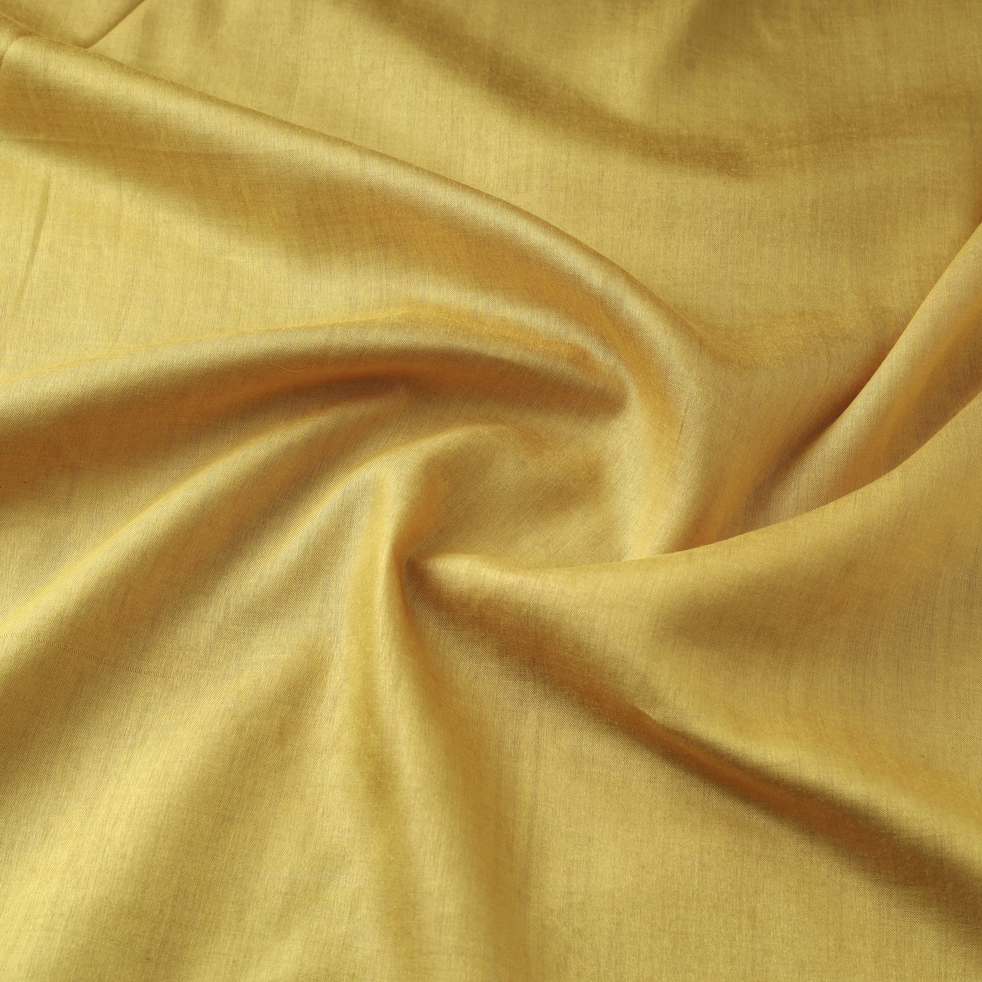 Yellow tussar silk blends the natural sheen of silk with the breathable softness of cotton, making it an ideal choice for all seasons. These handwoven fabrics in plain weaves from Vidarbha highlight intricate textures that honour traditional craftsmanship.
