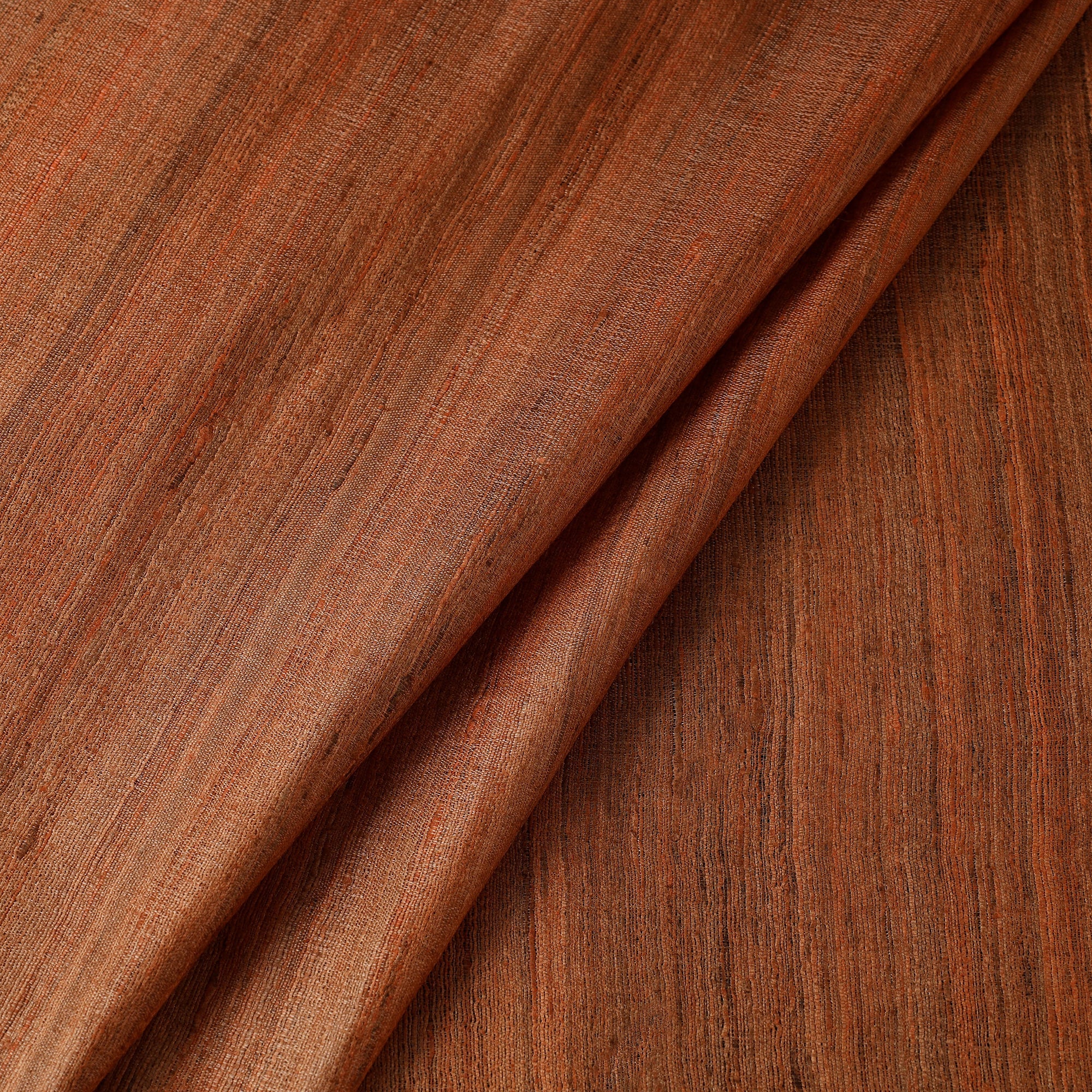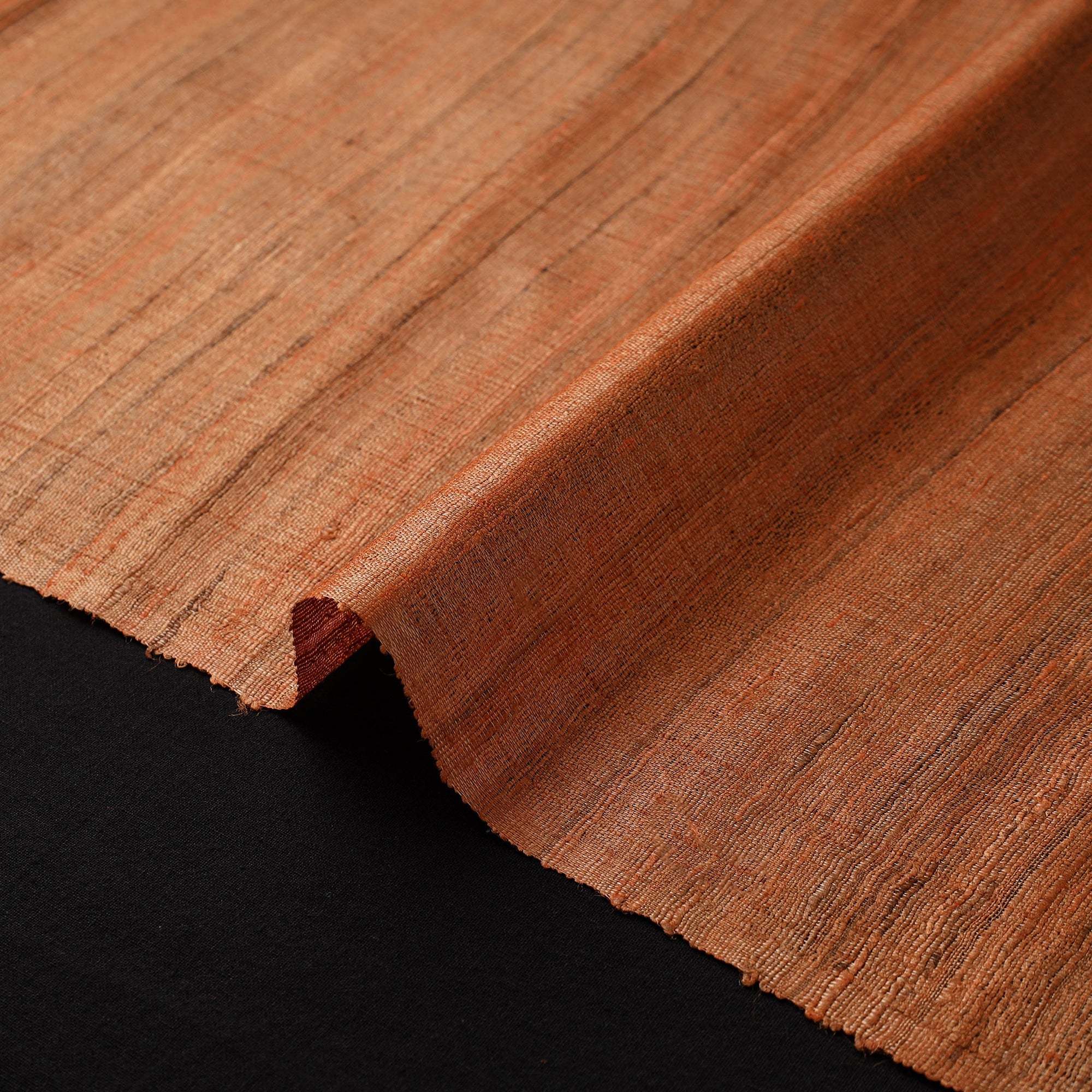 Orange tussar x ghicha silk fabric beautifully combines the natural shine of tussar with the soft, breathable texture of Ghicha yarn. Handwoven by skilled artisans from Vidarbha, this plain fabric features subtle textures and an elegant appeal. Perfect for all seasons. Ideal for apparel and elegant home decor accents.