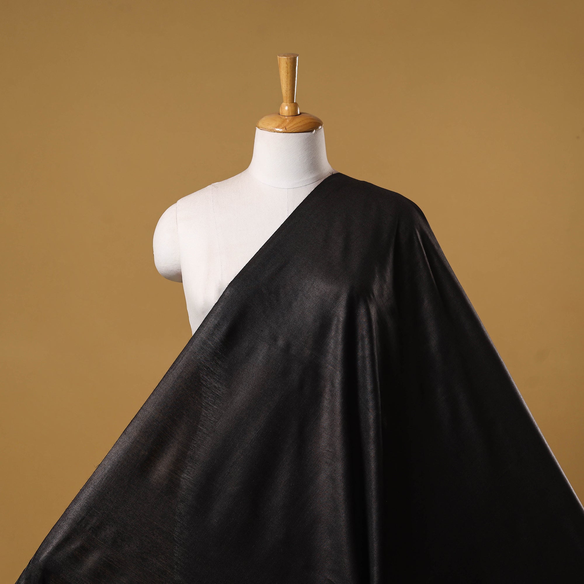 Black handwoven tussar x muga silk fabric by skilled artisans from Vidarbha, this beautifully combines the natural sheen of Tussar with the rich, textured feel of muga yarn. This plain fabric features subtle textures and an elegant appeal. Perfect for all seasons, it’s ideal for apparel and home decor accents.