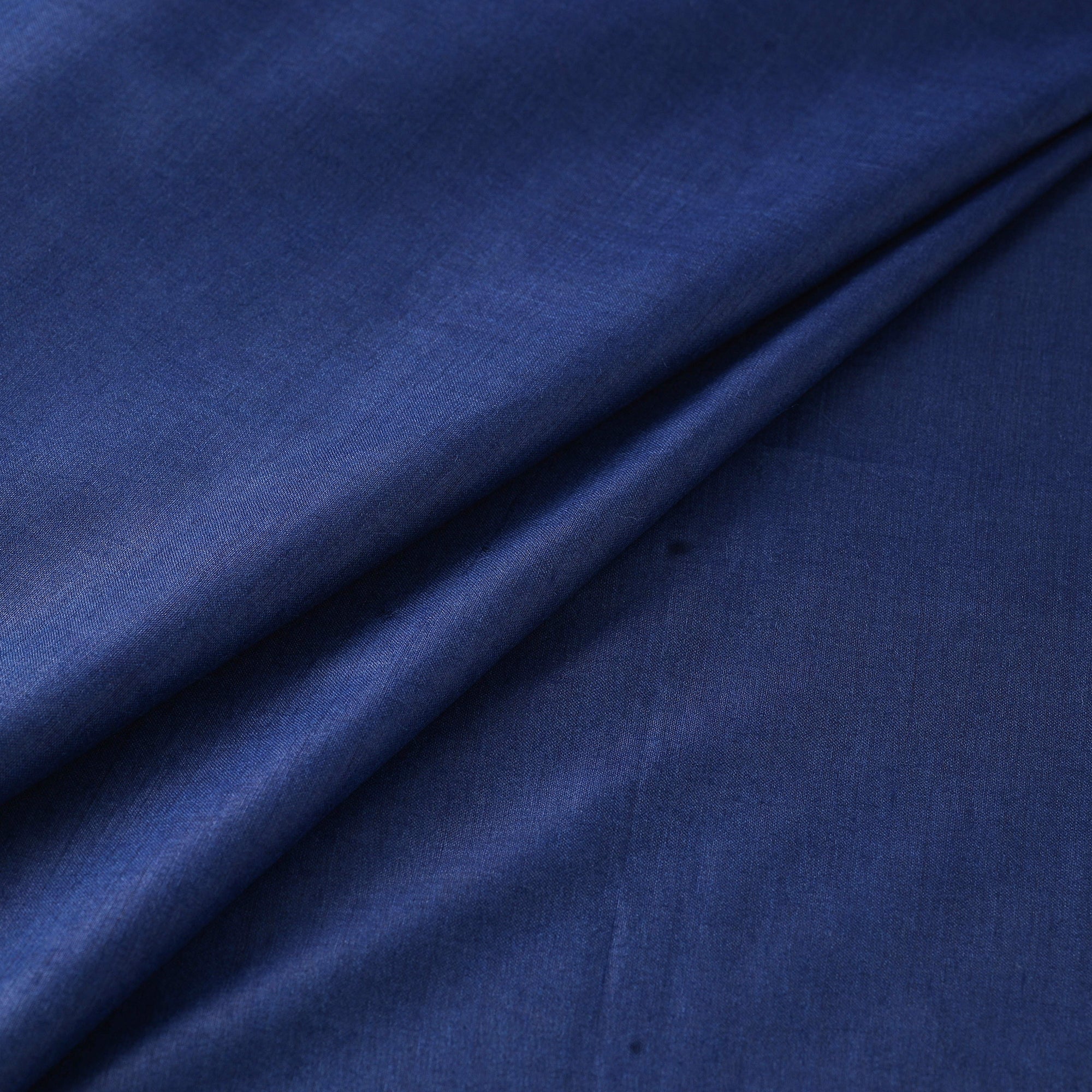 Blue handwoven tussar x muga silk fabric by skilled artisans from Vidarbha, this beautifully combines the natural sheen of Tussar with the rich, textured feel of muga yarn. This plain fabric features subtle textures and an elegant appeal. Perfect for all seasons, it’s ideal for apparel and home decor accents.