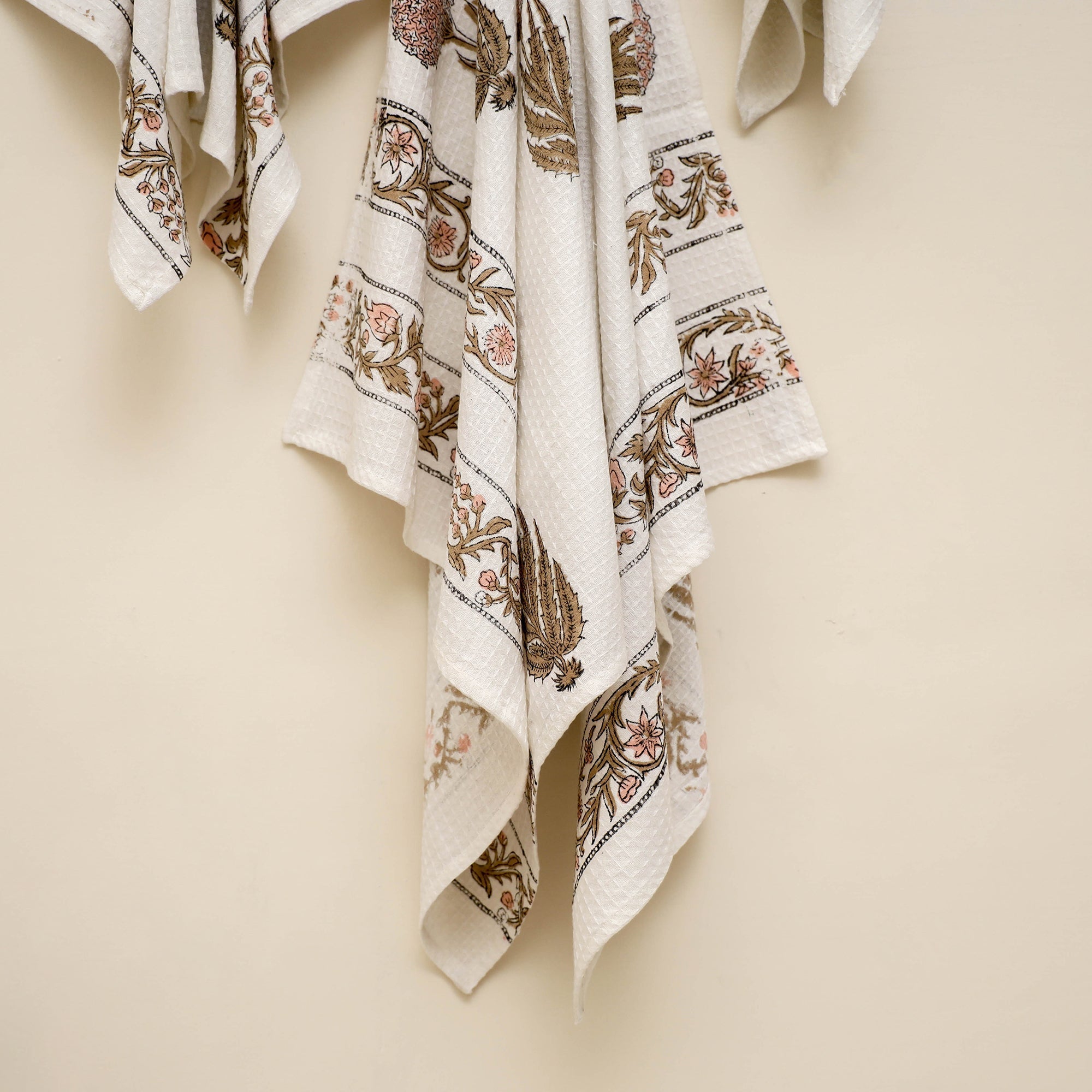 White - Waffle Weave Cotton Handwoven Sanganeri Block Print Towel (Set of 3) 11