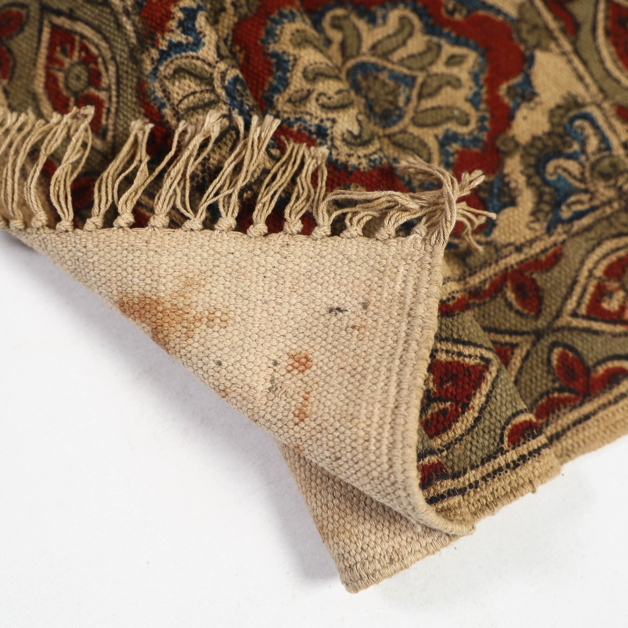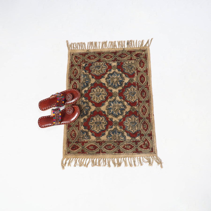 Add a touch of traditional elegance to your home with this red kalamkari block-printed cotton mat, inspired by ancient Indian art. Crafted using the warangal weaving technique and hand block printed by skilled artisans, each piece reflects the essence of cultural heritage. Made with breathable cotton and natural dyes, this mat showcases the intricate beauty of kalamkari painting.
