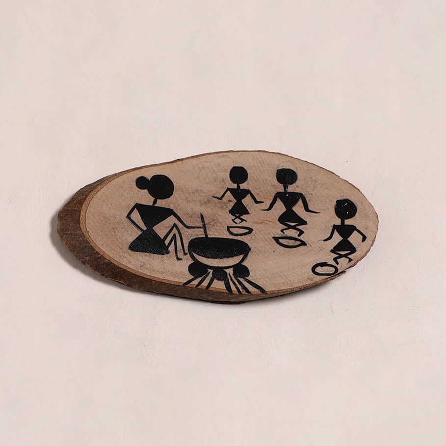 • Warli handpainted wooden fridge magnet 10 - handcrafted