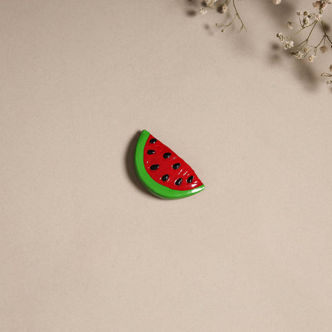 This handpainted terracotta magnet adds a charming touch to your space. Made by master artisan Mahesh Kumar in Lucknow, it is shaped from natural clay and detailed with oil paints. Whether you place it on your fridge or gift it to someone special, it brings a personal, artistic flair.