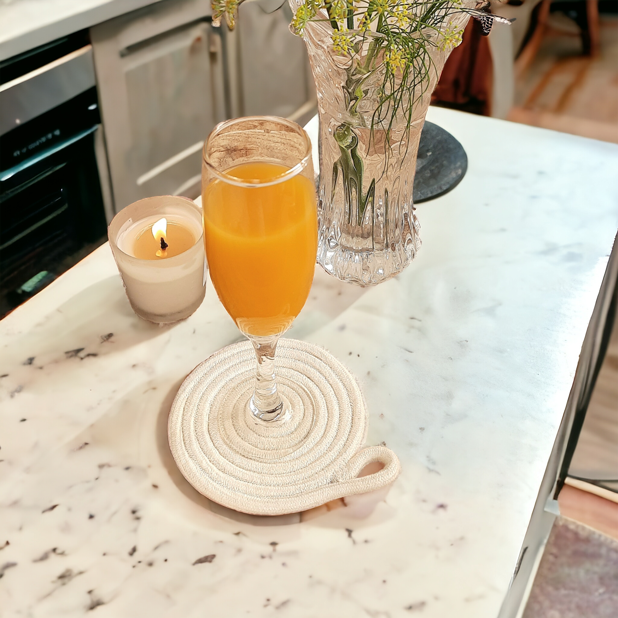 They may look like your average round plates, but coasters can also brighten up your home decor. This is where you can choose the material, you can choose from 3 main materials, depending on your needs: marble, wood and stone. They will look great as decorations.