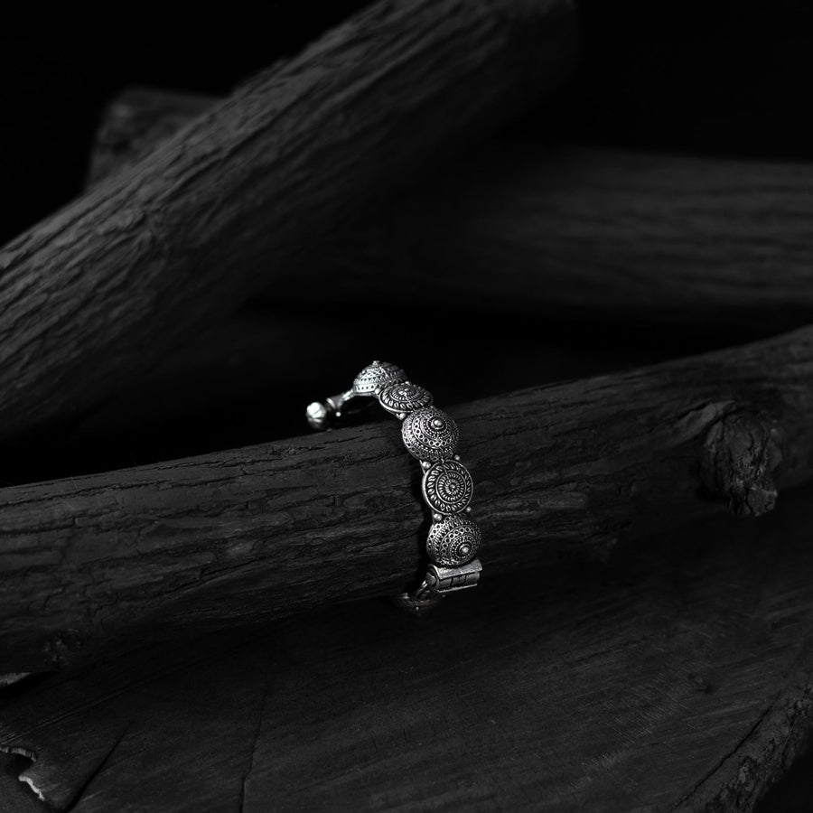This handcrafted white oxidised bangle features a silver tone finish with elegant detailing and timeless appeal. Perfect for festive occasions, weddings office wear, or casual outings this bangle pairs beautifully with sarees, kurtas, or contemporary outfits. A meaningful gift for your mother, sister, wife, or girlfriend adding a beautiful touch of tradition to every moment.