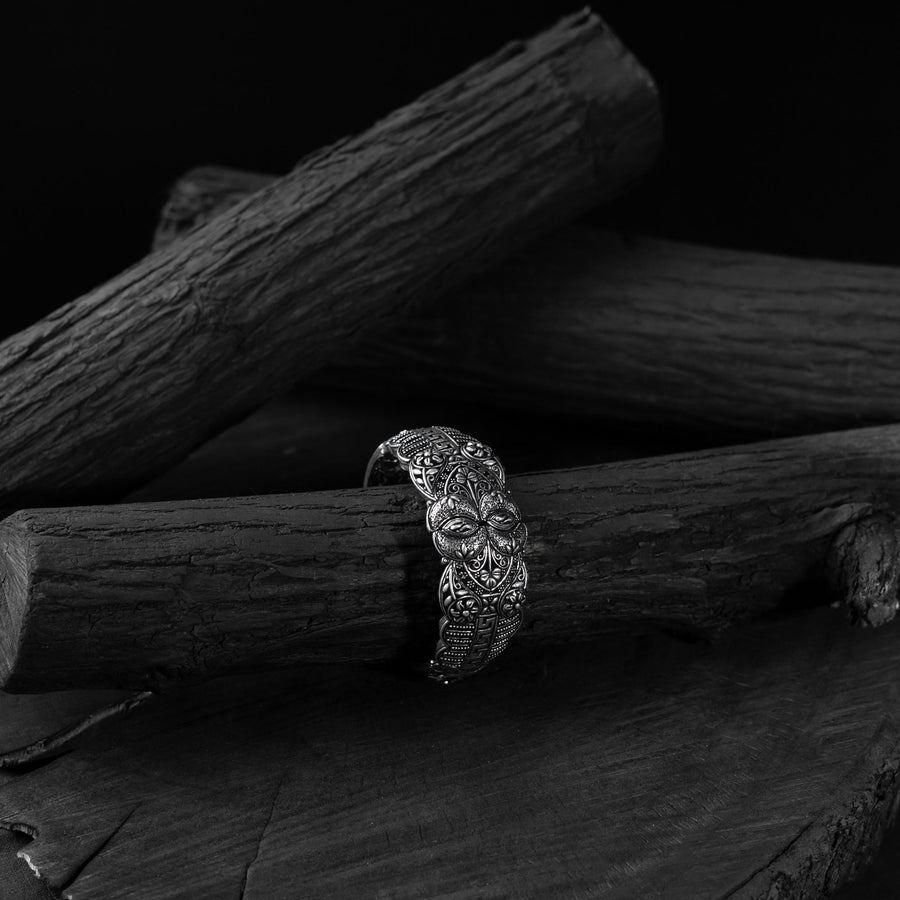 This handcrafted white oxidised bangle features a silver tone finish with elegant detailing and timeless appeal. Perfect for festive occasions, weddings office wear, or casual outings this bangle pairs beautifully with sarees, kurtas, or contemporary outfits. A meaningful gift for your mother, sister, wife, or girlfriend adding a beautiful touch of tradition to every moment.