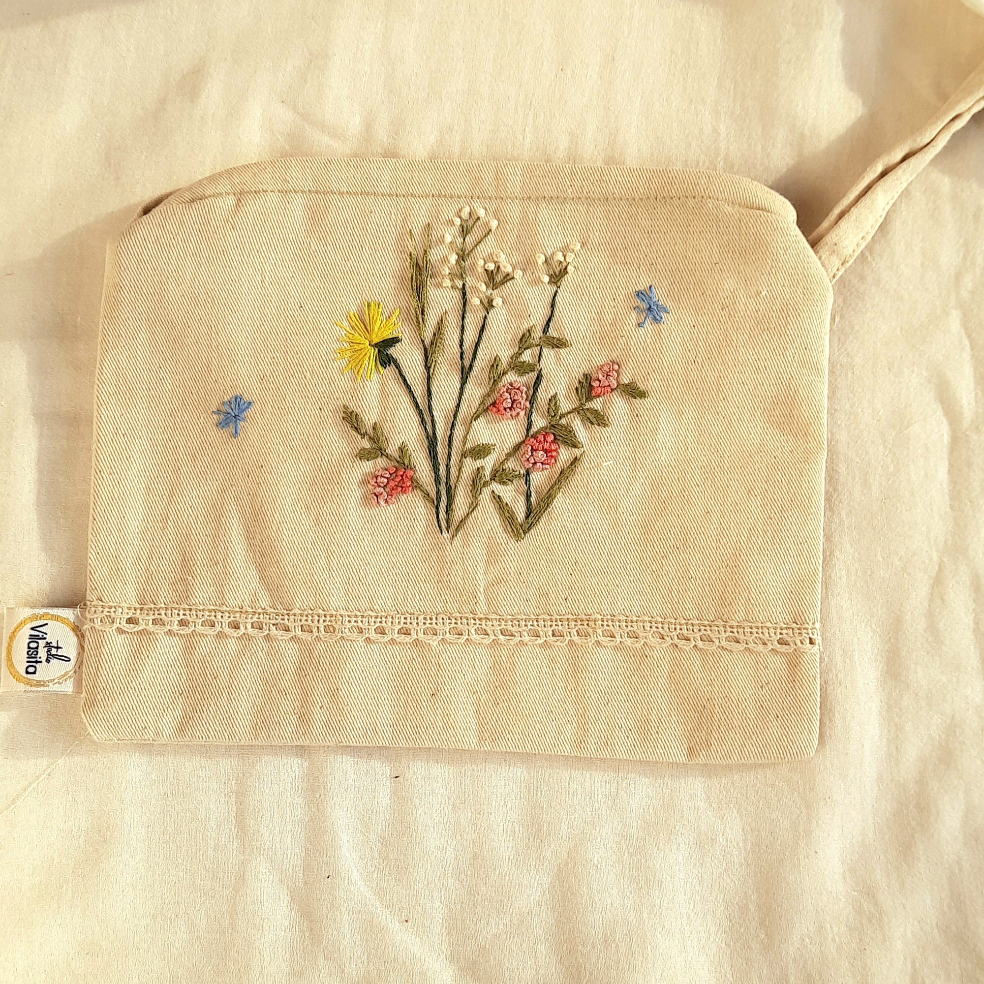 Wildflower Bouquet Hand Embroidered Utility Pouch