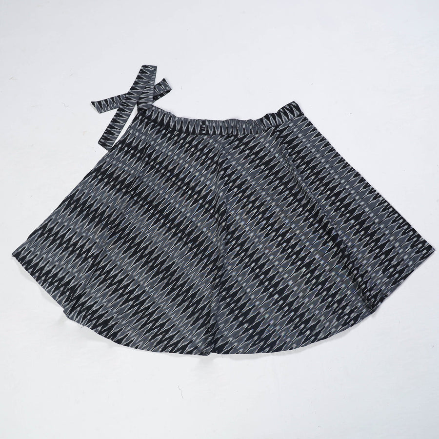 Wrap yourself in the tradition with our black wrap around cotton pochampally ikat skirt . Showcasing the intricate patterns of the ikat weaving technique, this wrap-around skirt is a testament to Indias rich textile heritage. Crafted from eco-friendly cotton, it breathable comfort and a customizable fit with its waist tie-up closure. Ideal for casual days or festive evenings, it effortlessly blends cultural artistry with modern fashion.