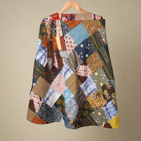 • Multicolor Wrap Around Patchwork Cotton Skirt