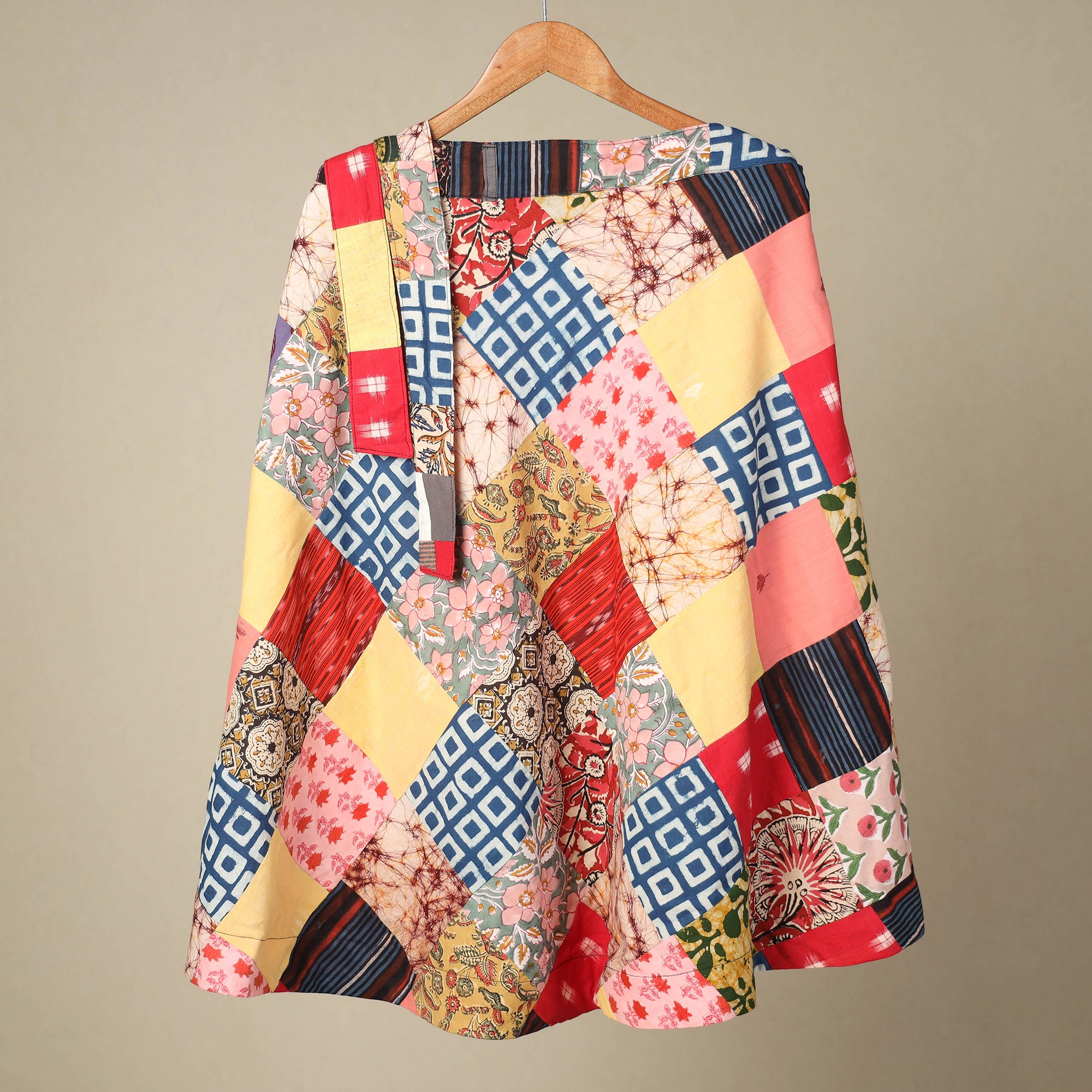 • Multicolor Wrap Around Patchwork Cotton Skirt
