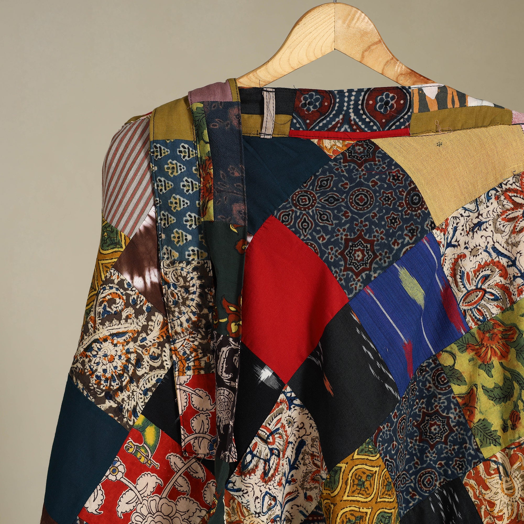 Step into effortless style with this multicolor cotton wrap-around skirt, crafted using regional tukdi-style patchwork techniques. Each panel is made by combining textile remnants sourced from a mix of Indian crafts. Lightweight and breathable, it features a comfortable wrap fit that adjusts to your waist, making it perfect for casual days, laid-back vibes, or beachy getaways.