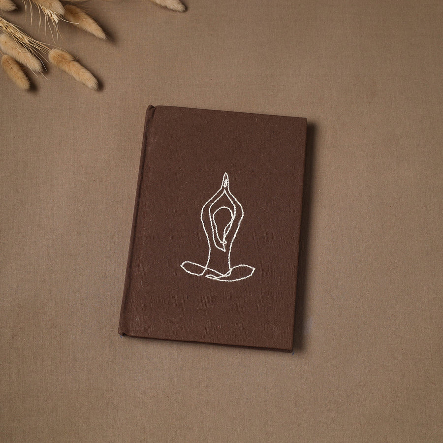 Hand embroidered plain fabric embellished hardbound cover journal / diary with handmade papers. The paper is made from cotton and other natural fibre waste, recycled in an eco-friendly process without the use of chemicals. Crafted by women artisans, this journal features a beautiful embroidery of a yoga figure, who give careful personal attention to every detail. A creative and practical choice for journaling, planning or capturing daily thoughts, and also a thoughtful gift for a yoga teacher.