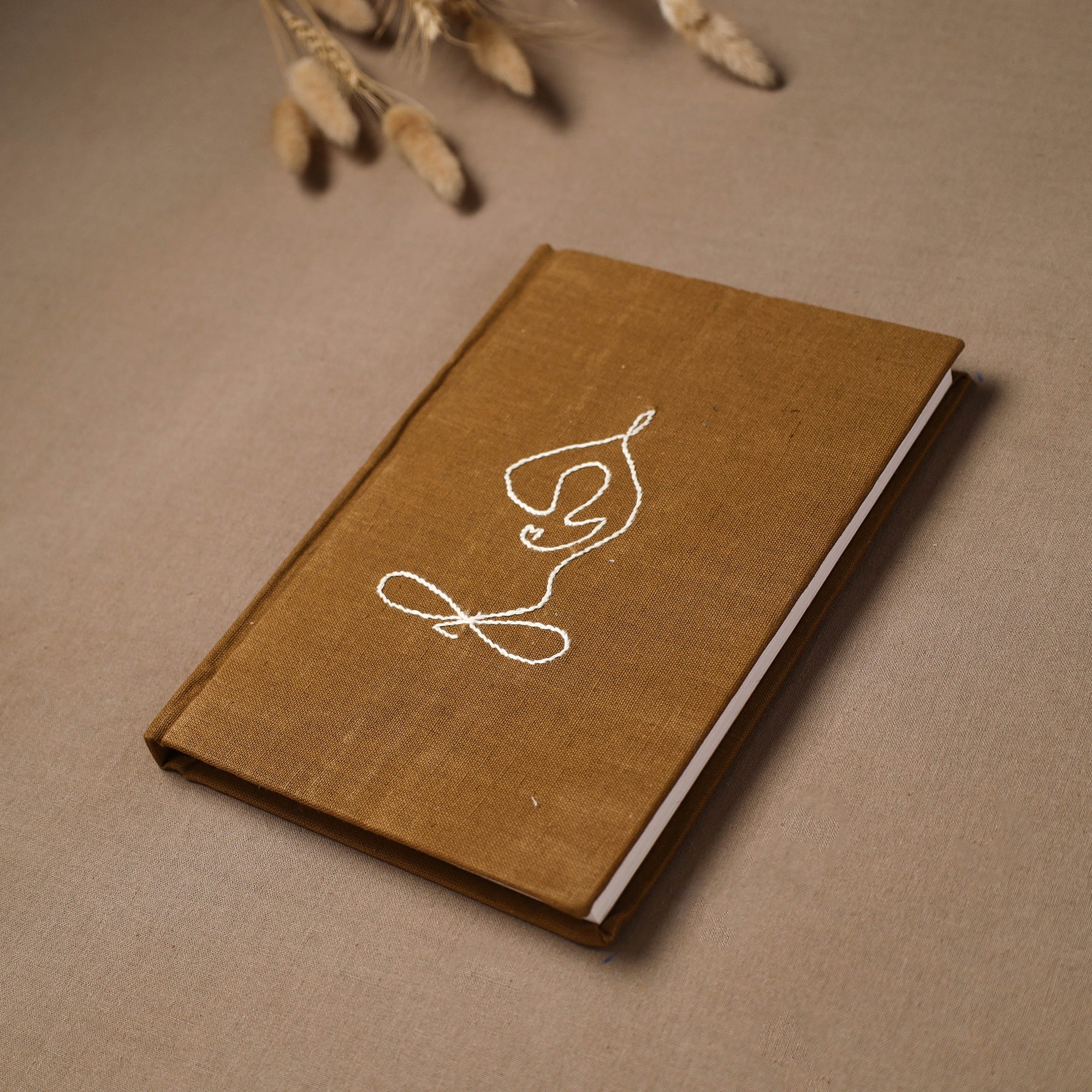 Hand embroidered plain fabric embellished hardbound cover journal / diary with handmade papers. The paper is made from cotton and other natural fibre waste, recycled in an eco-friendly process without the use of chemicals. Crafted by women artisans, this journal features a beautiful embroidery of a yoga figure, who give careful personal attention to every detail. A creative and practical choice for journaling, planning or capturing daily thoughts, and also a thoughtful gift for a yoga teacher.