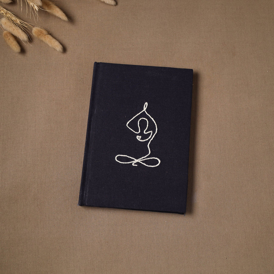 Hand embroidered plain fabric embellished hardbound cover journal / diary with handmade papers. The paper is made from cotton and other natural fibre waste, recycled in an eco-friendly process without the use of chemicals. Crafted by women artisans, this journal features a beautiful embroidery of a yoga figure, who give careful personal attention to every detail. A creative and practical choice for journaling, planning or capturing daily thoughts, and also a thoughtful gift for a yoga teacher.