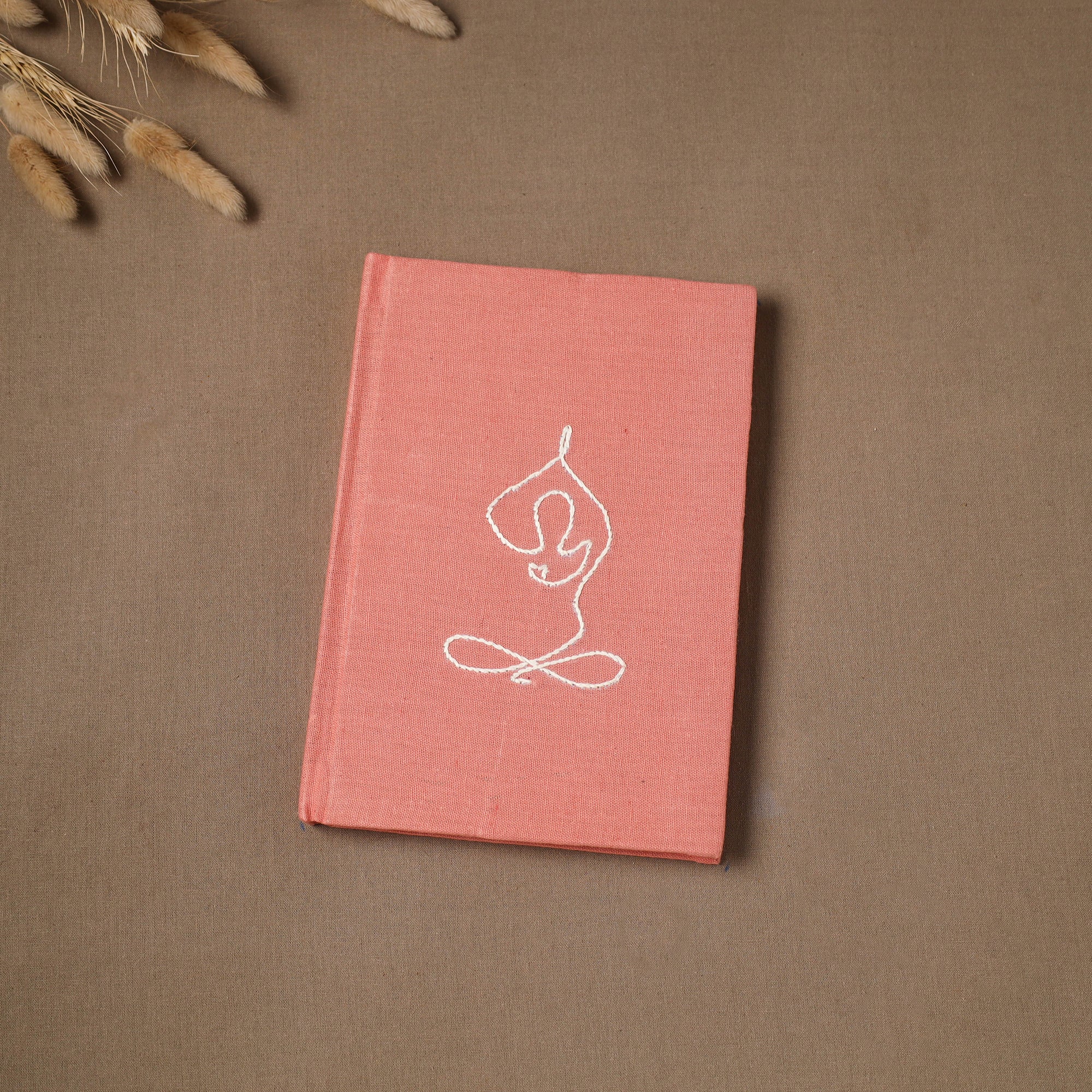 Hand embroidered plain fabric embellished hardbound cover journal / diary with handmade papers. The paper is made from cotton and other natural fibre waste, recycled in an eco-friendly process without the use of chemicals. Crafted by women artisans, this journal features a beautiful embroidery of a yoga figure, who give careful personal attention to every detail. A creative and practical choice for journaling, planning or capturing daily thoughts, and also a thoughtful gift for a yoga teacher.