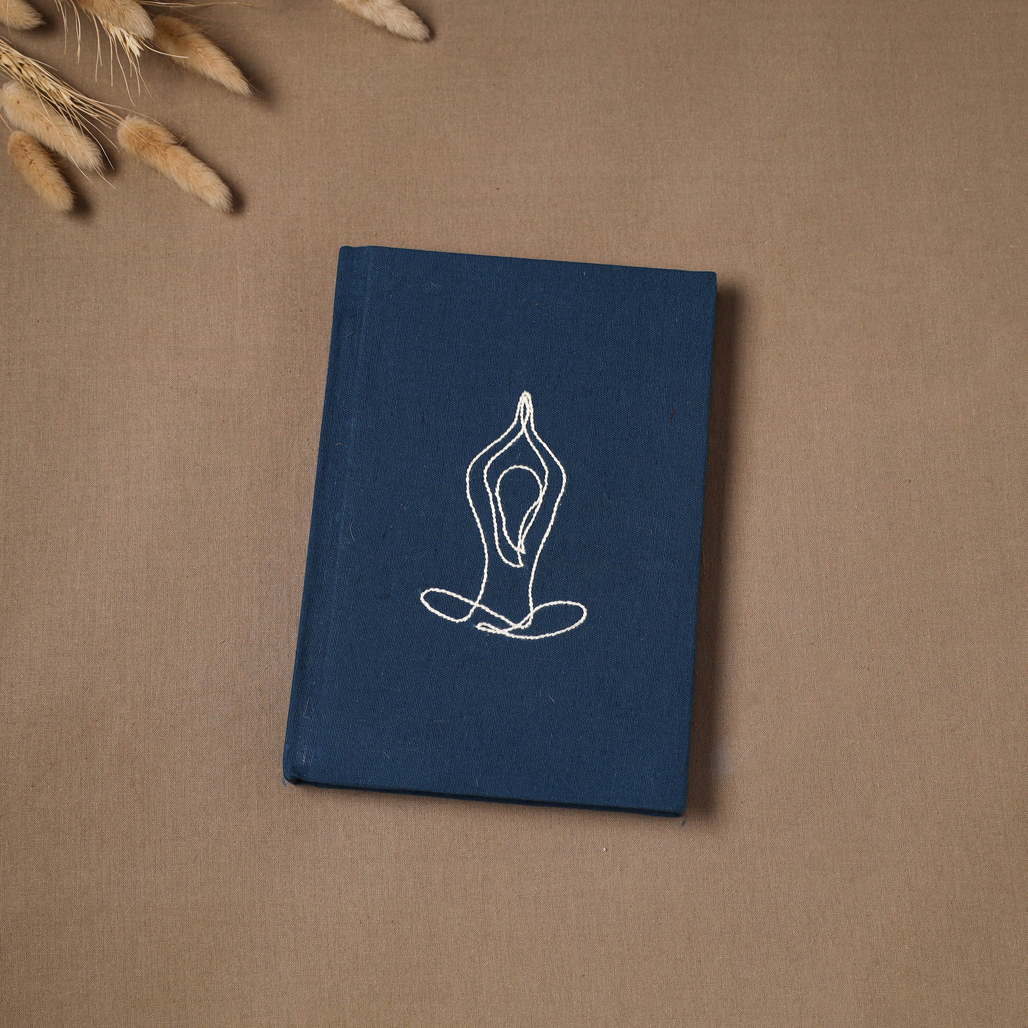 Hand embroidered plain fabric embellished hardbound cover journal / diary with handmade papers. The paper is made from cotton and other natural fibre waste, recycled in an eco-friendly process without the use of chemicals. Crafted by women artisans, this journal features a beautiful embroidery of a yoga figure, who give careful personal attention to every detail. A creative and practical choice for journaling, planning or capturing daily thoughts, and also a thoughtful gift for a yoga teacher.