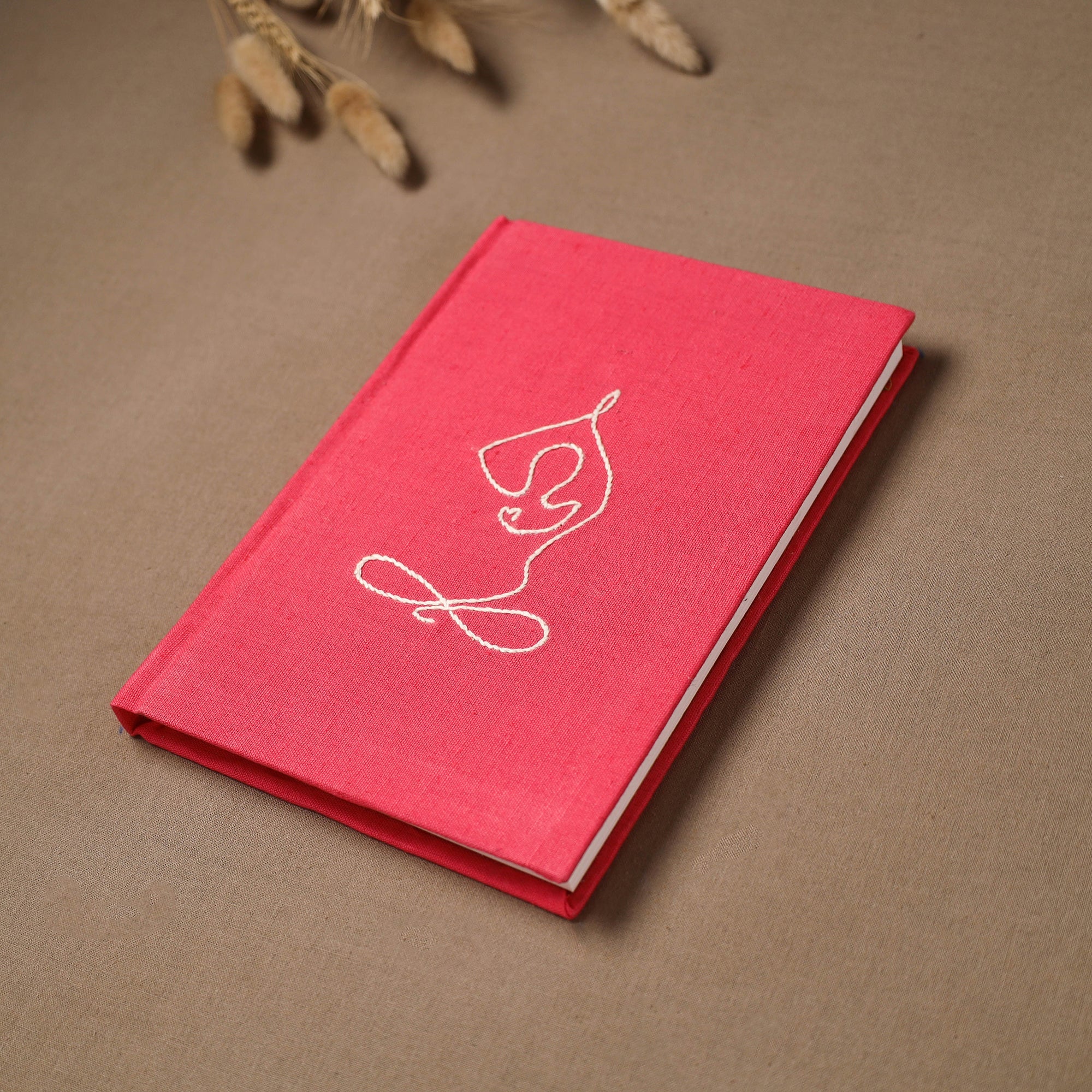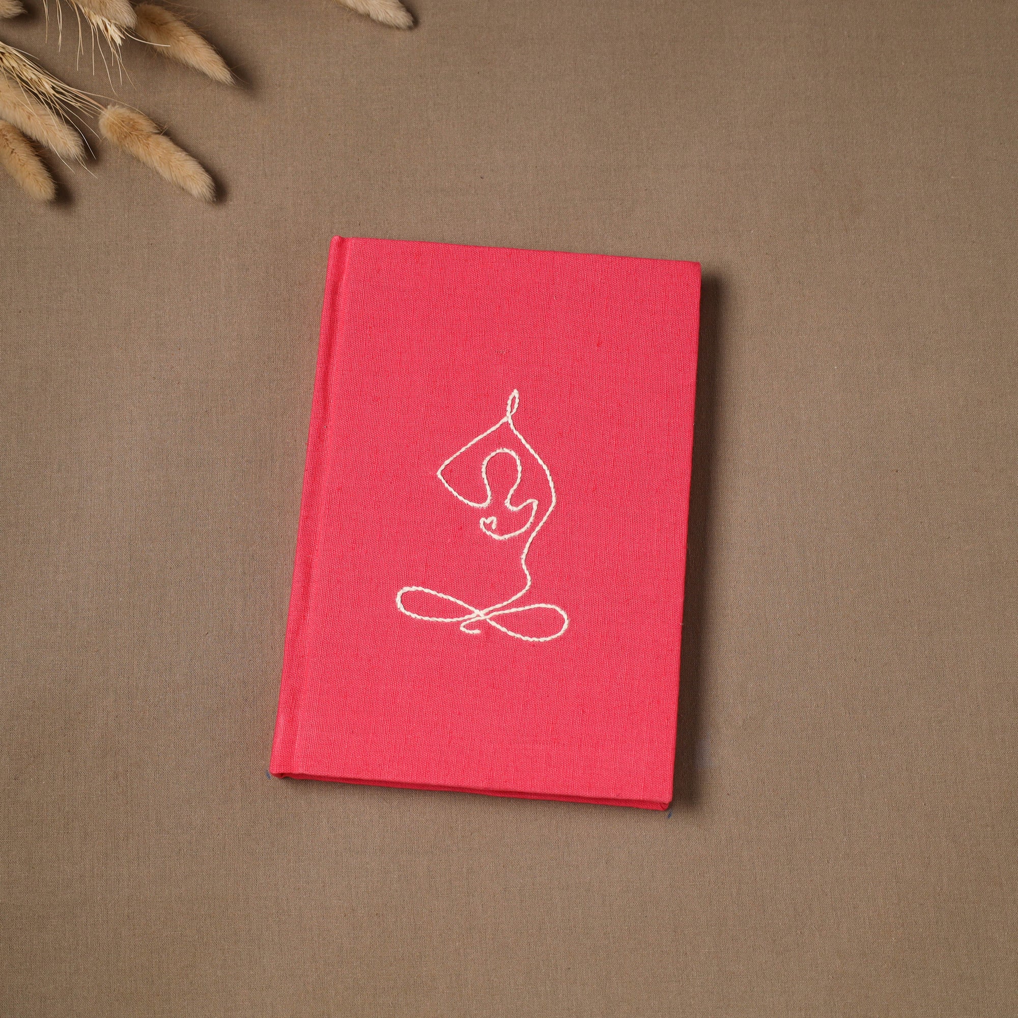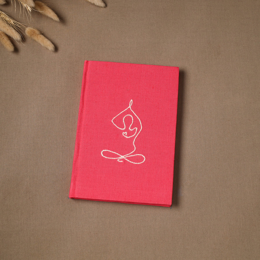 Hand embroidered plain fabric embellished hardbound cover journal / diary with handmade papers. The paper is made from cotton and other natural fibre waste, recycled in an eco-friendly process without the use of chemicals. Crafted by women artisans, this journal features a beautiful embroidery of a yoga figure, who give careful personal attention to every detail. A creative and practical choice for journaling, planning or capturing daily thoughts, and also a thoughtful gift for a yoga teacher.