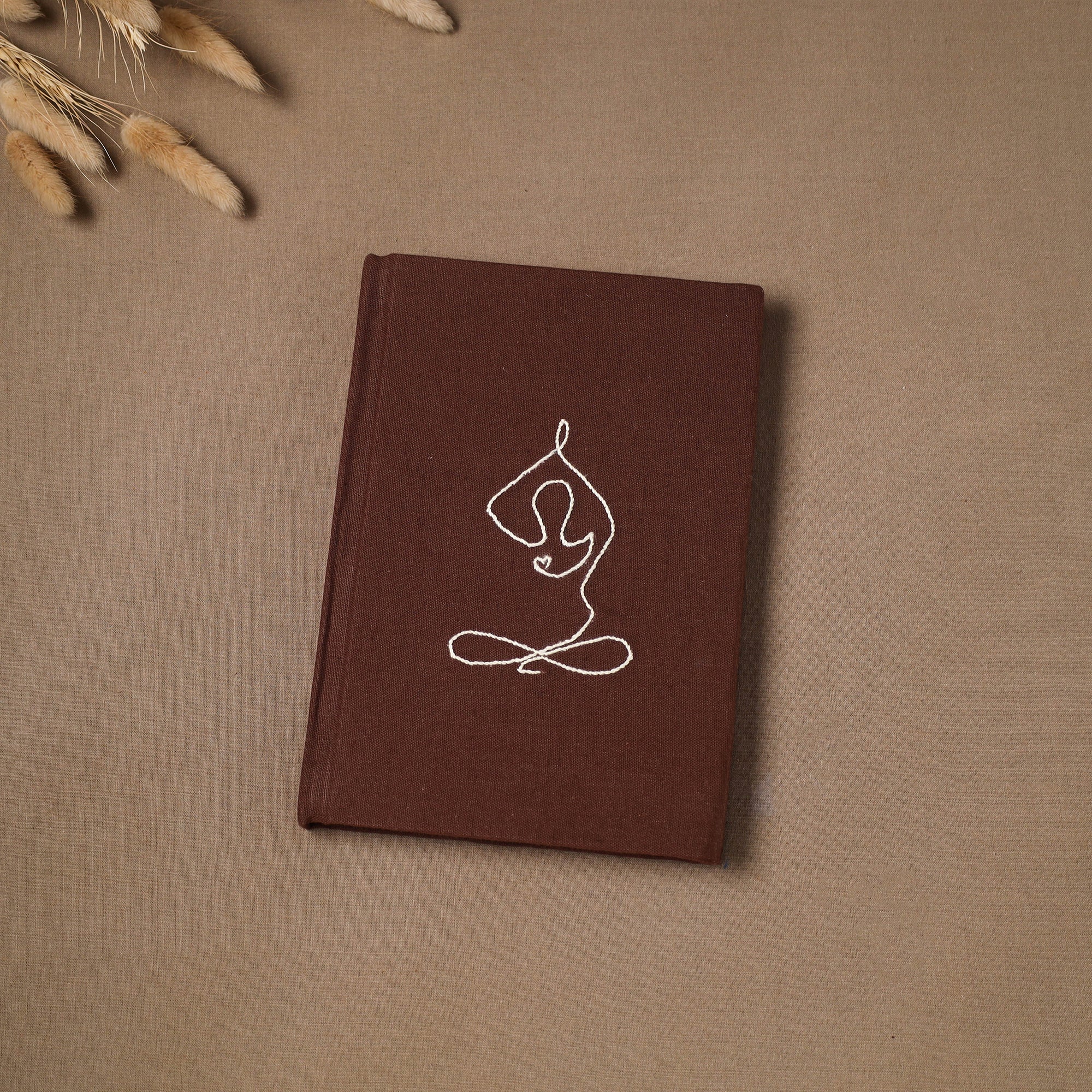 Hand embroidered plain fabric embellished hardbound cover journal / diary with handmade papers. The paper is made from cotton and other natural fibre waste, recycled in an eco-friendly process without the use of chemicals. Crafted by women artisans, this journal features a beautiful embroidery of a yoga figure, who give careful personal attention to every detail. A creative and practical choice for journaling, planning or capturing daily thoughts, and also a thoughtful gift for a yoga teacher.