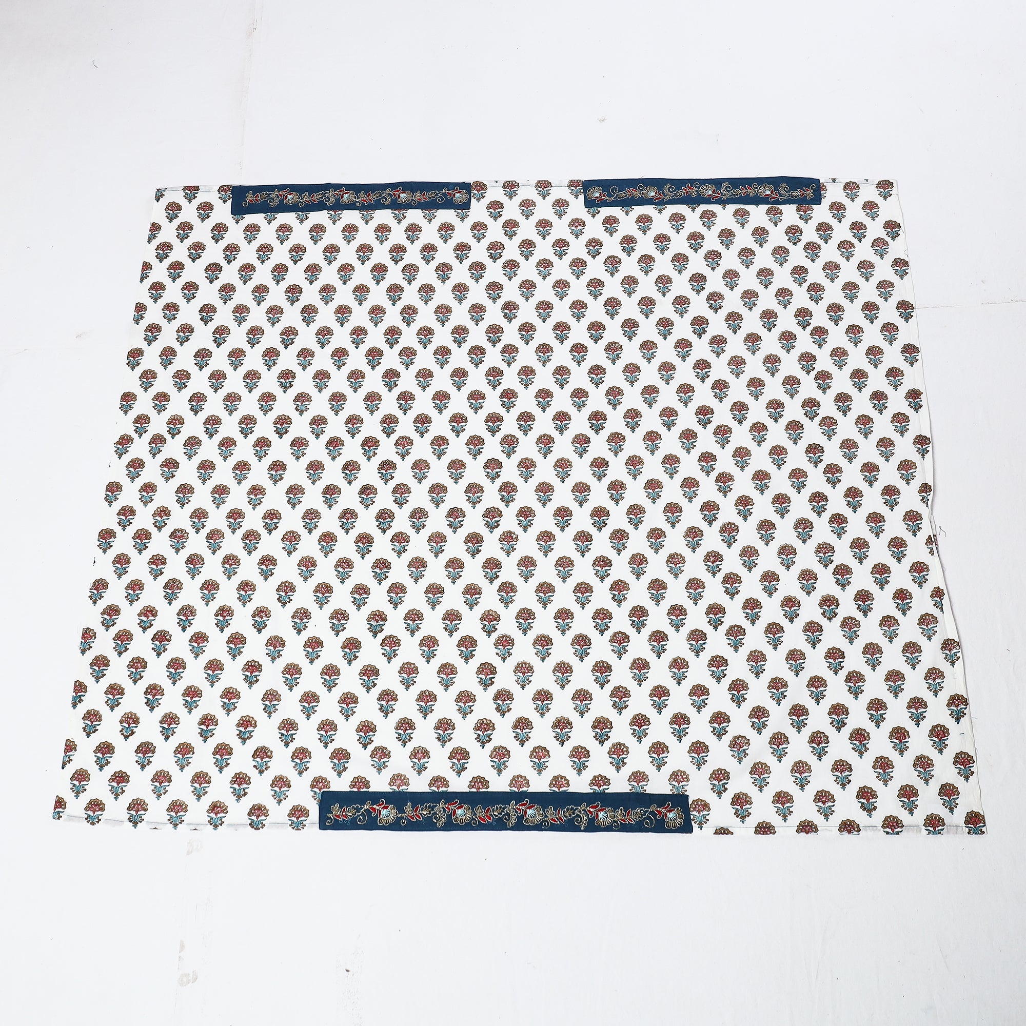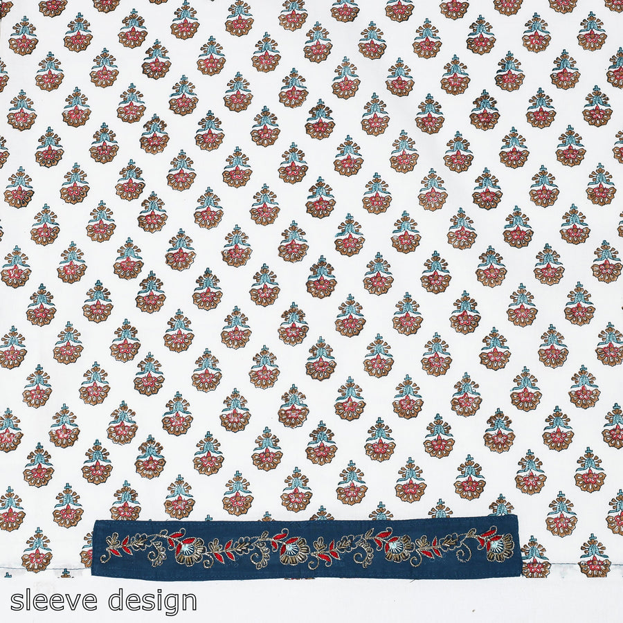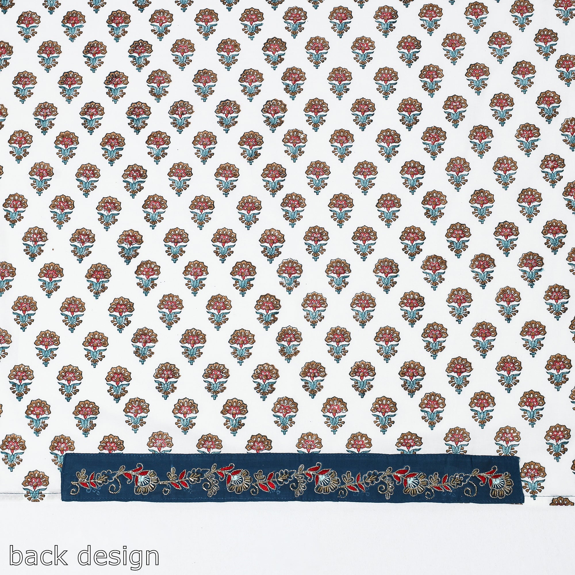 Fine quality zardozi hand embroidered sanganeri block printed cotton blouse material made from cotton fabrics & textured with handmade textiles of India. This embroidered blouse material will go with almost all of your sarees & enhance your look.