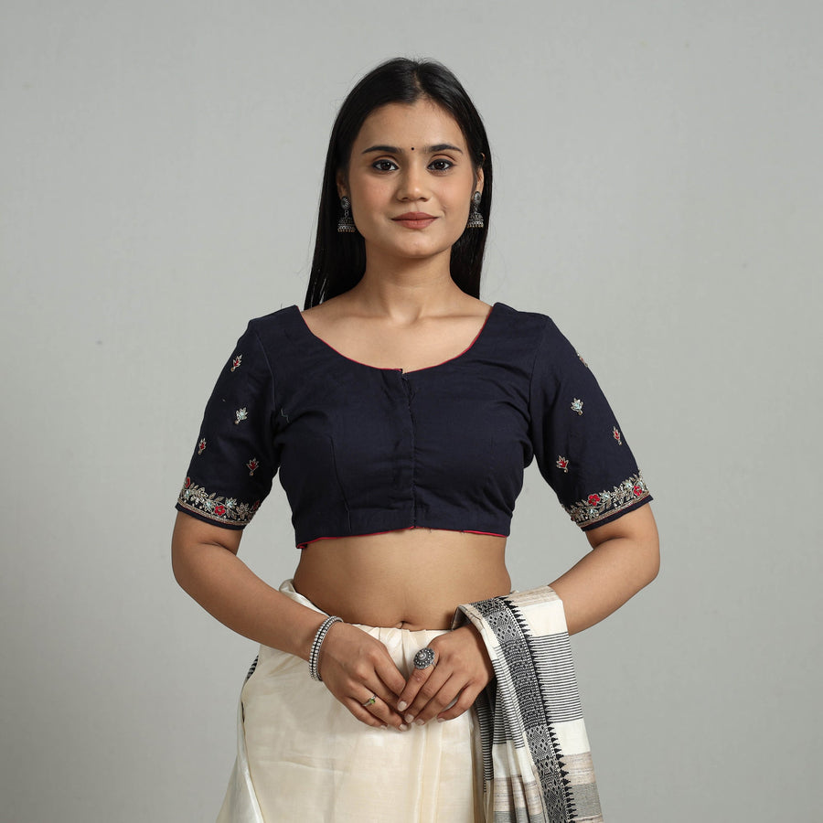 This black zardozi hand embroidery cotton blouse combines traditional craftsmanship with modern comfort. The breathable cotton ensures a relaxed fit, while the intricate zardozi embroidery adds a touch of elegance. Featuring half sleeves and a convenient hook lock, this stitched blouse is perfect for both casual and festive occasions.