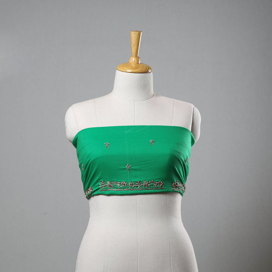This zardozi hand embroidery cotton green plain blouse piece is meticulously hand-embroidered with elegant zardozi work, blending modern comfort with traditional artistry. Made from breathable cotton, it’s perfect for both casual and festive occasions.