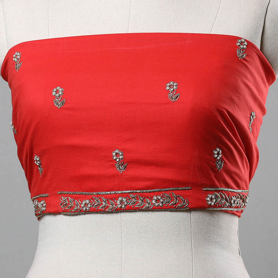 This zardozi hand embroidery cotton red plain blouse piece is meticulously hand-embroidered with elegant zardozi work, blending modern comfort with traditional artistry. Made from breathable cotton, it’s perfect for both casual and festive occasions.