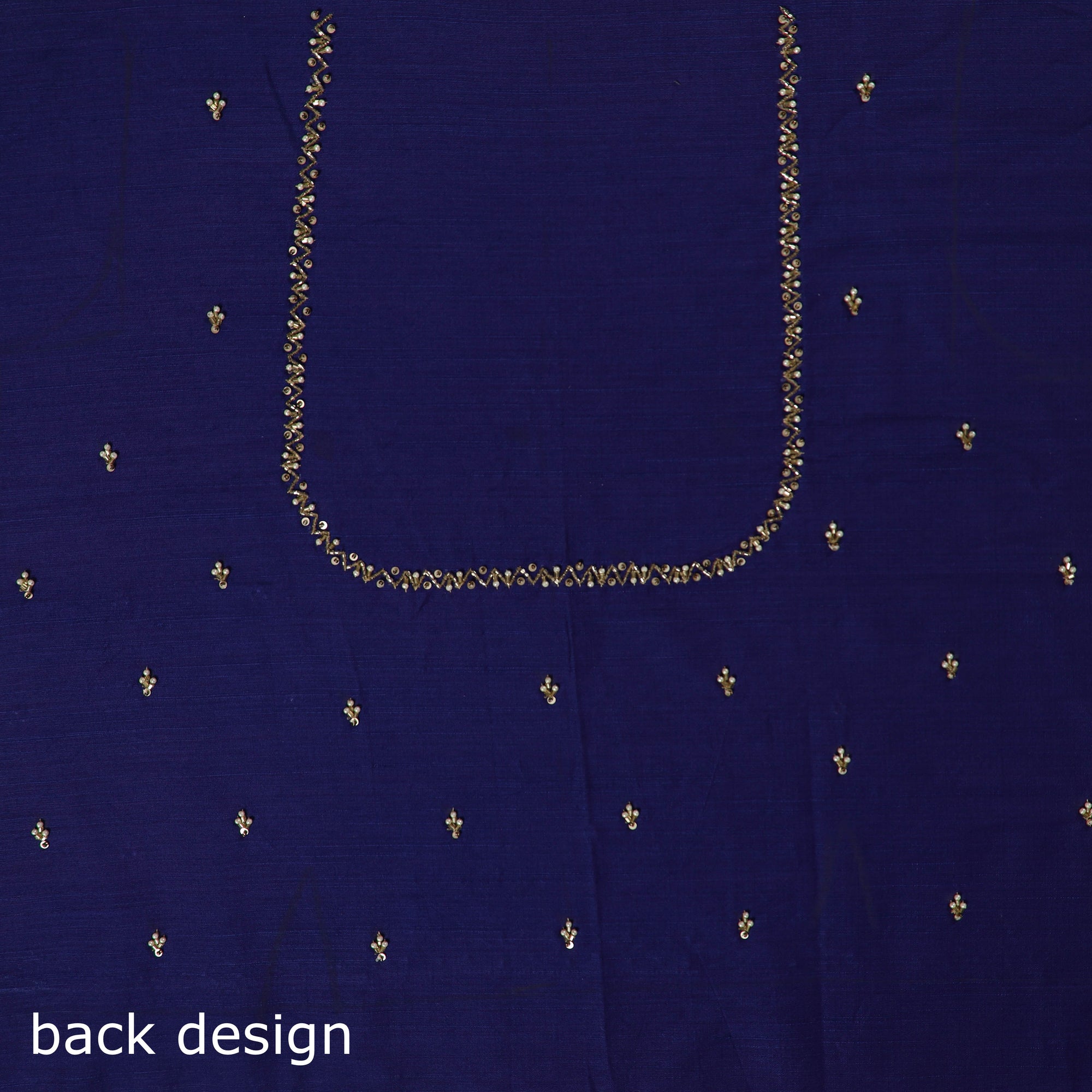 This blue zardozi hand-embroidered slub silk blouse piece features elegant detailing that enhances its festive appeal. The slub silk fabric keeps it stylish yet comfortable. You can tailor it your way, whether simple, trendy, or traditional. A versatile pick for everyday wear as well as special occasions.