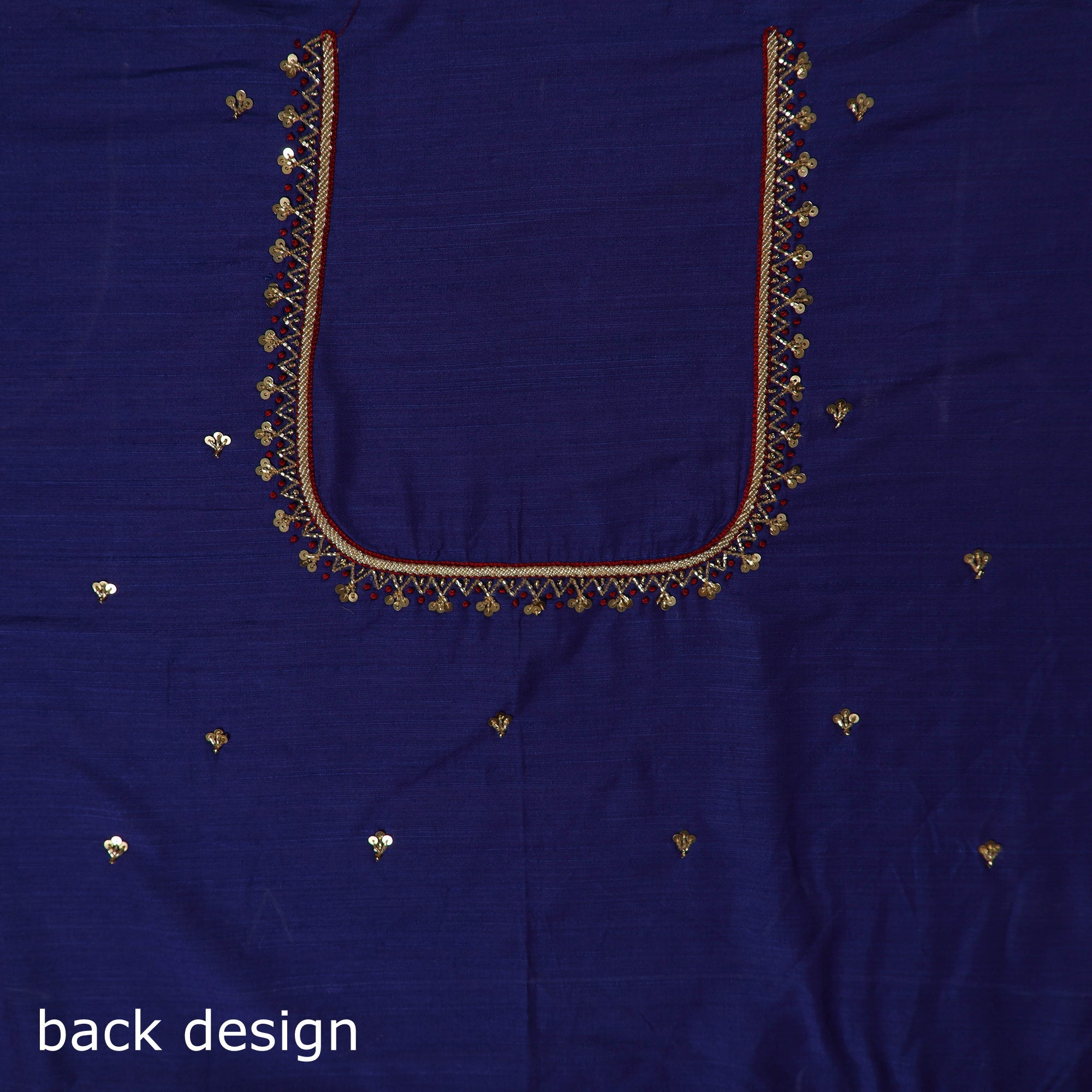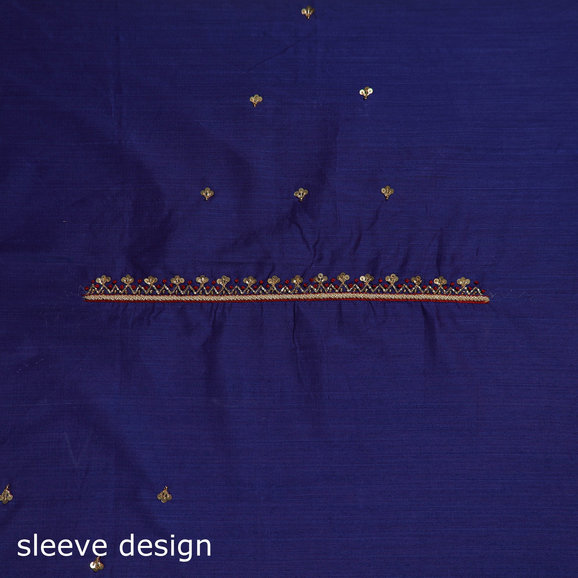 • Blue - zardozi hand embroidery slub silk plain blouse piece