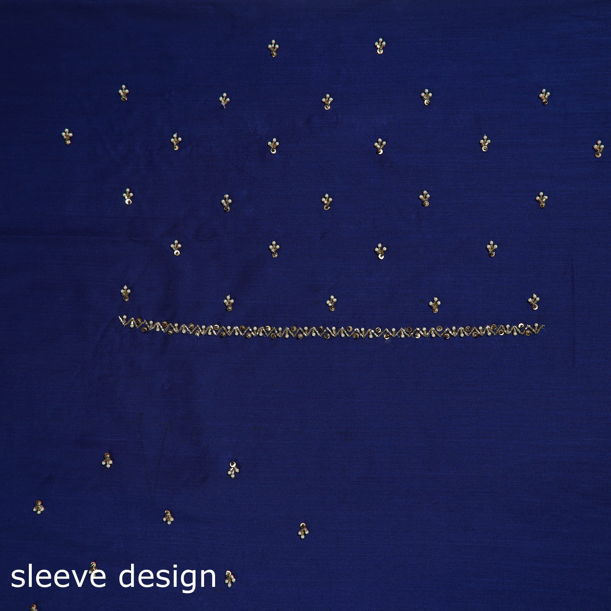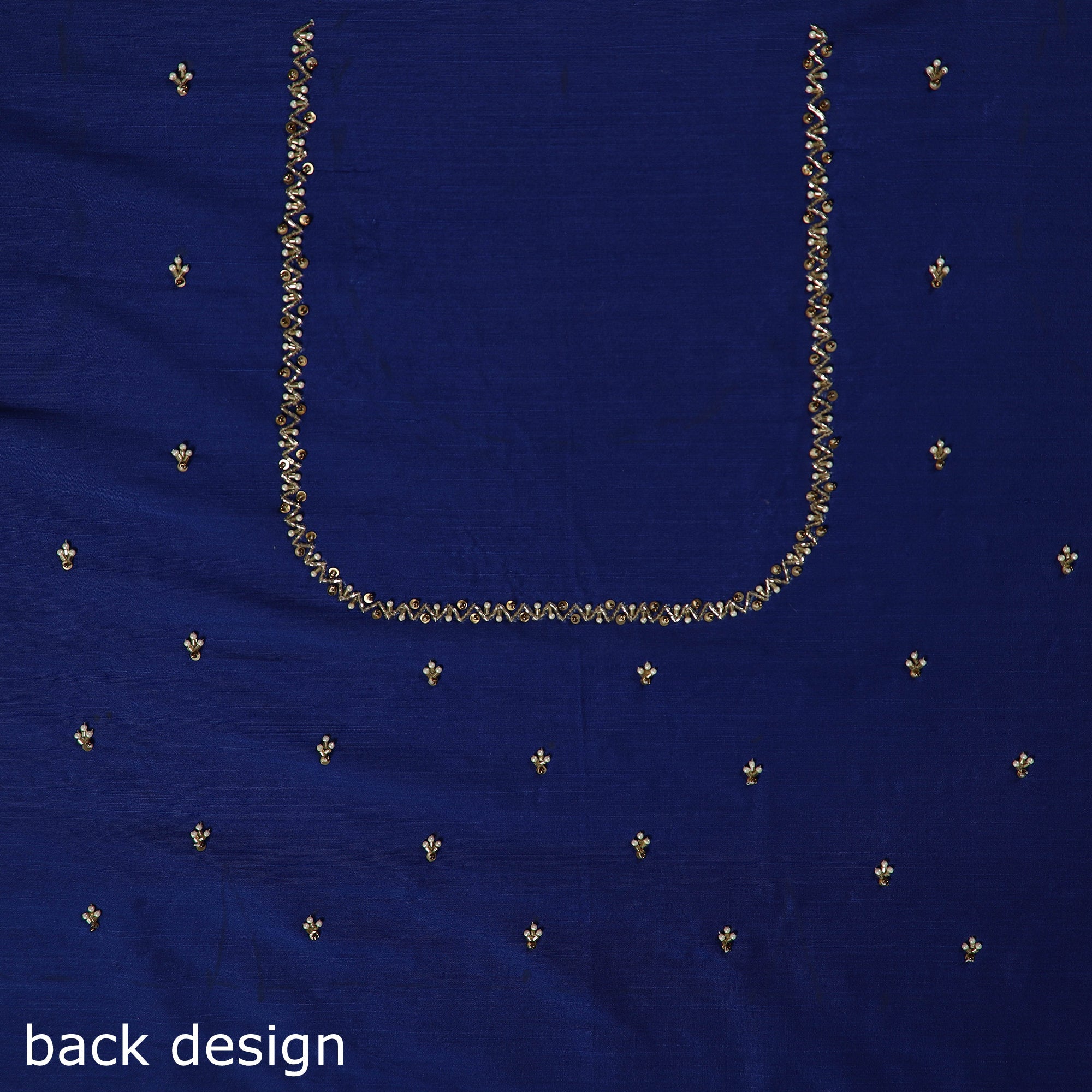 • Blue - zardozi hand embroidery slub silk plain blouse piece